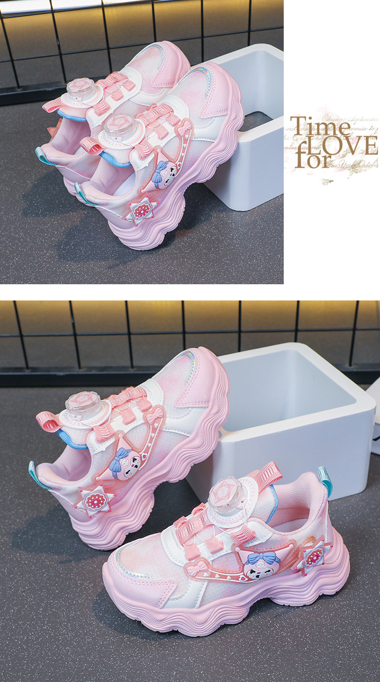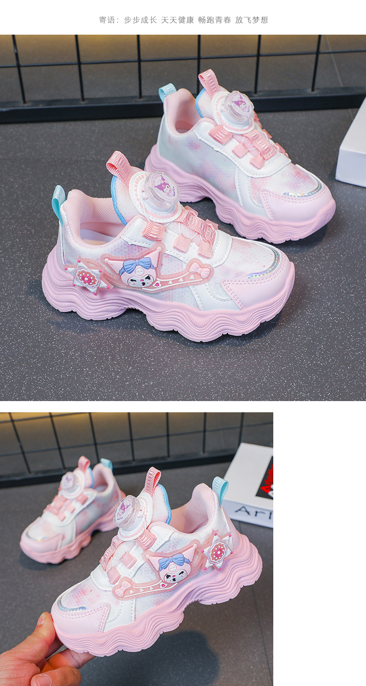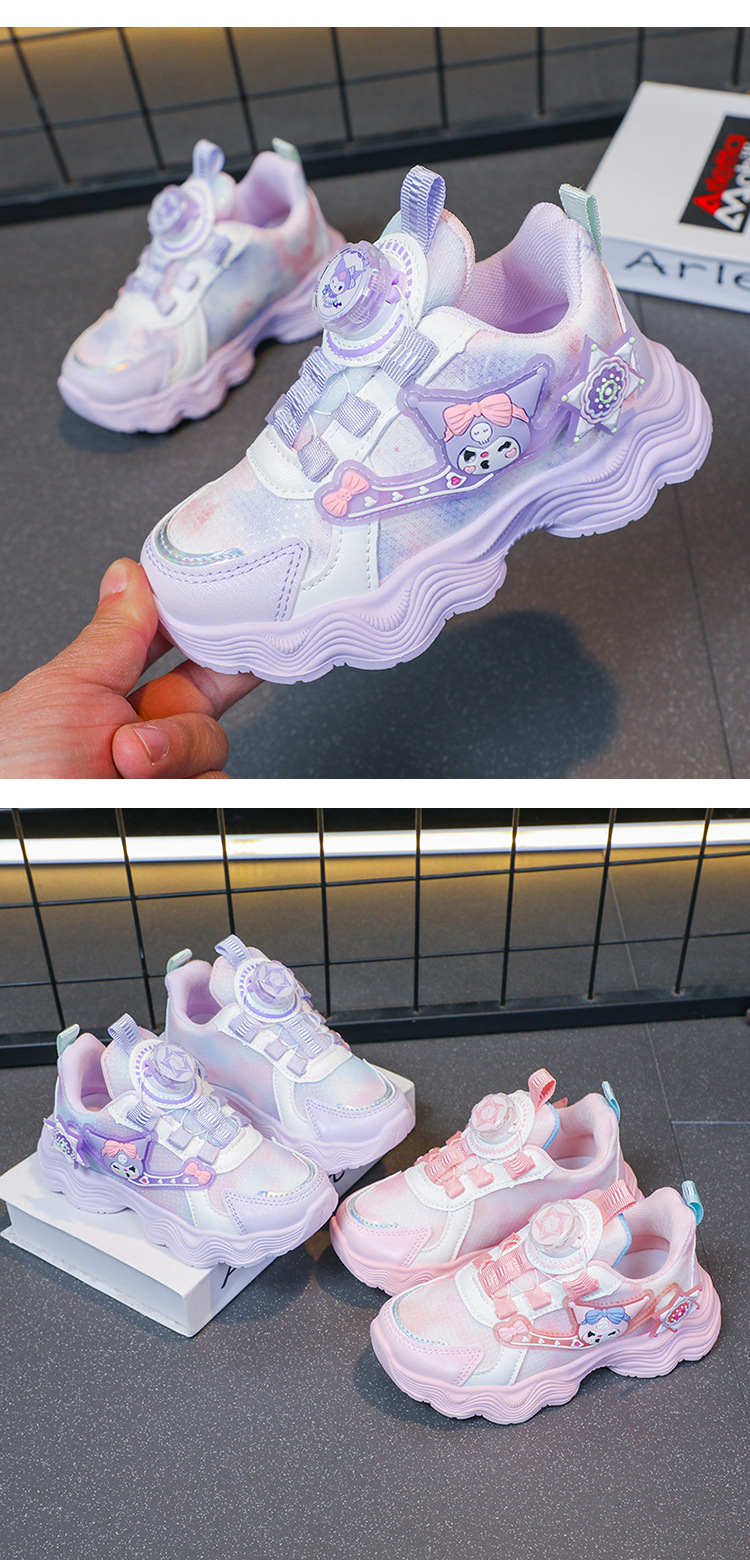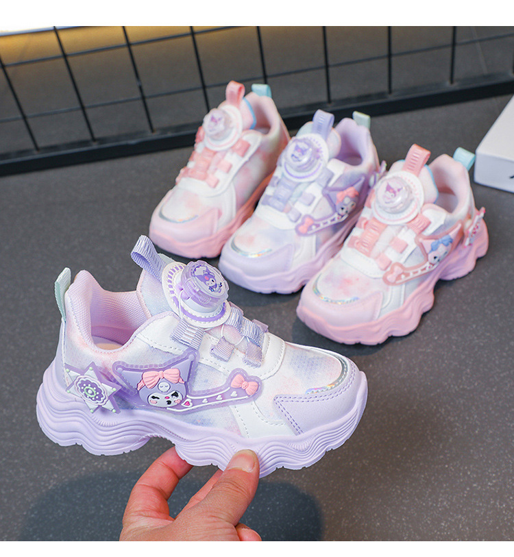 소녀를위한 Bumblebee 스포츠 신발 소녀를위한 메쉬 통기성 운동화 만화 Kuromi 회전 버클 가죽 아빠 신발스토어 가기