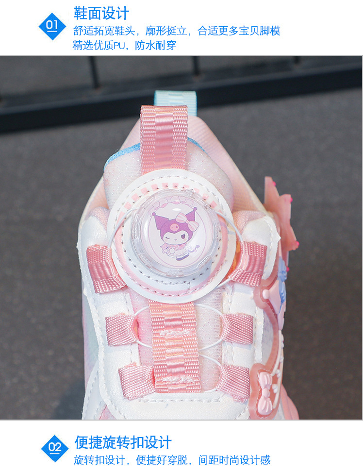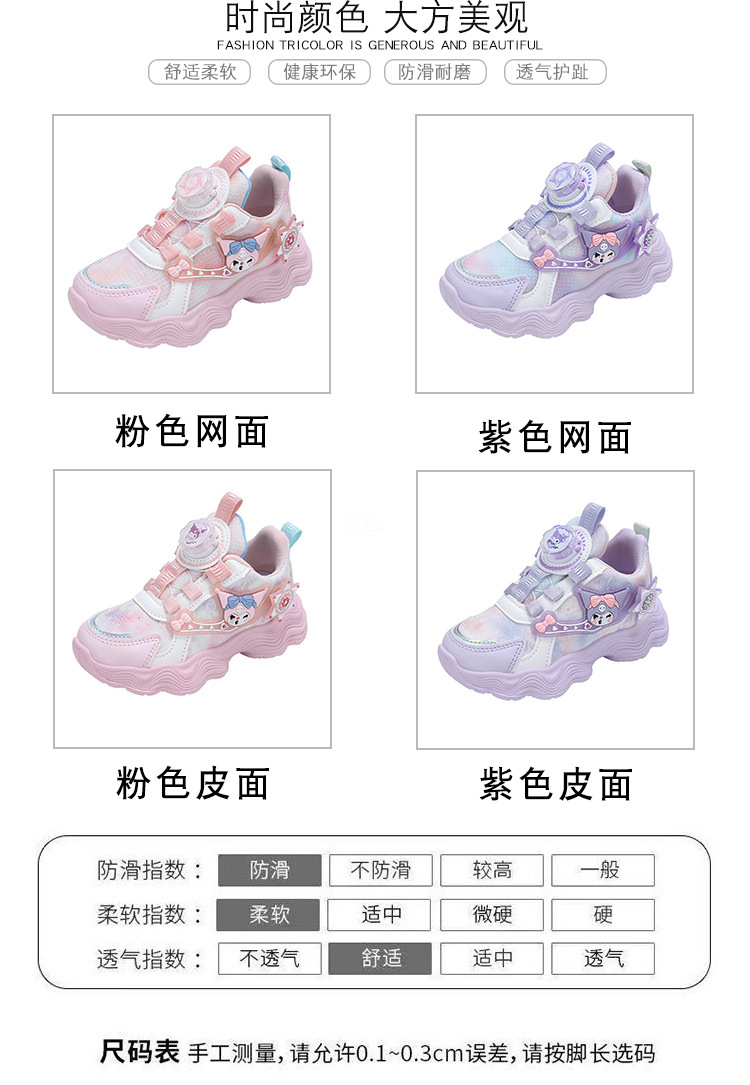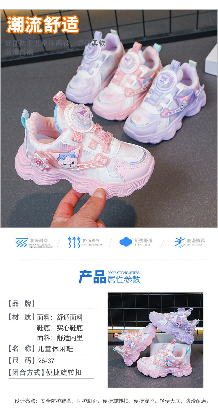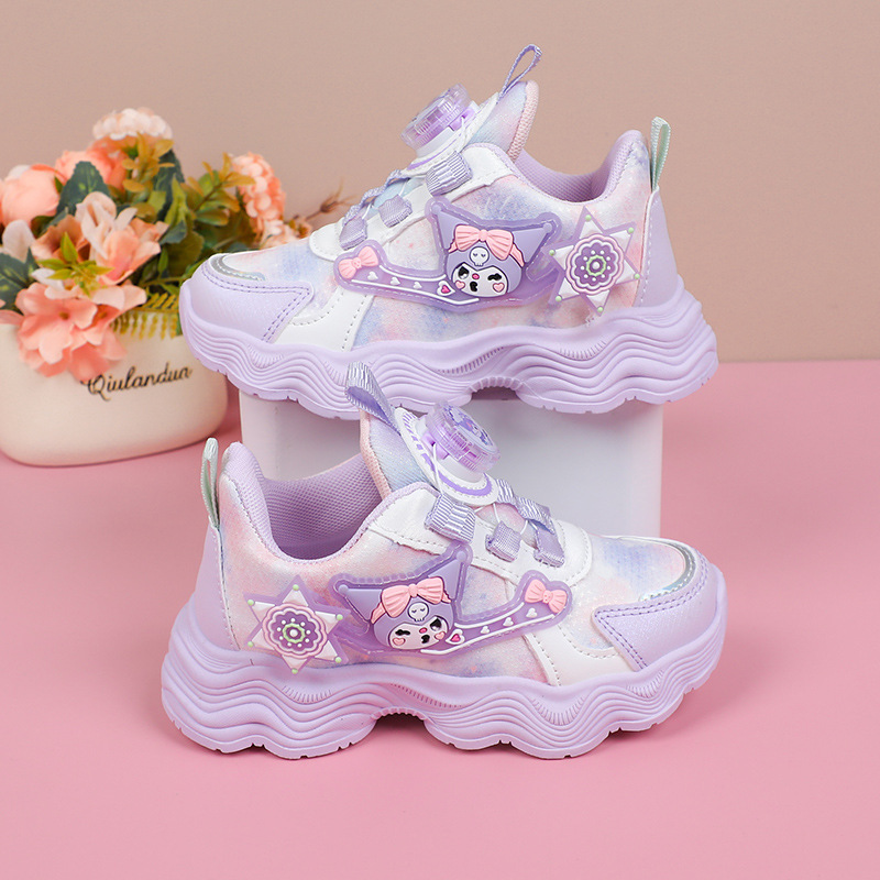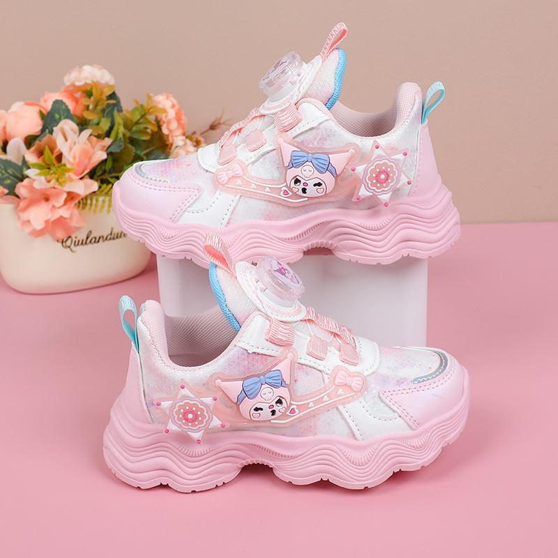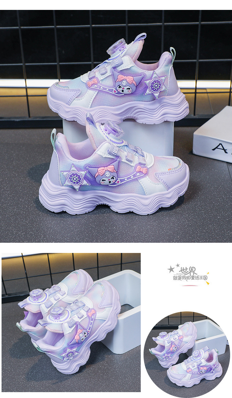 소녀를위한 Bumblebee 스포츠 신발 소녀를위한 메쉬 통기성 운동화 만화 Kuromi 회전 버클 가죽 아빠 신발스토어 가기