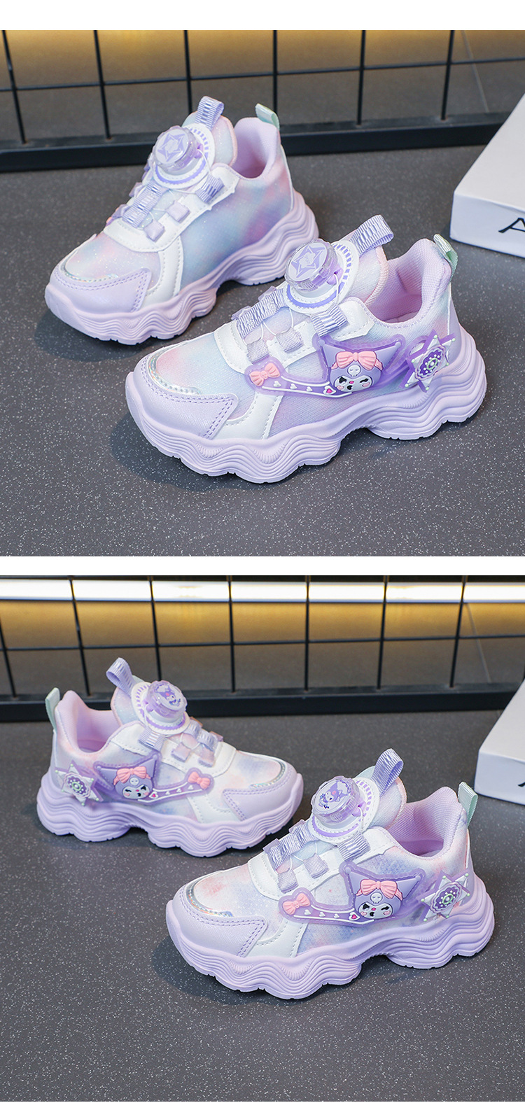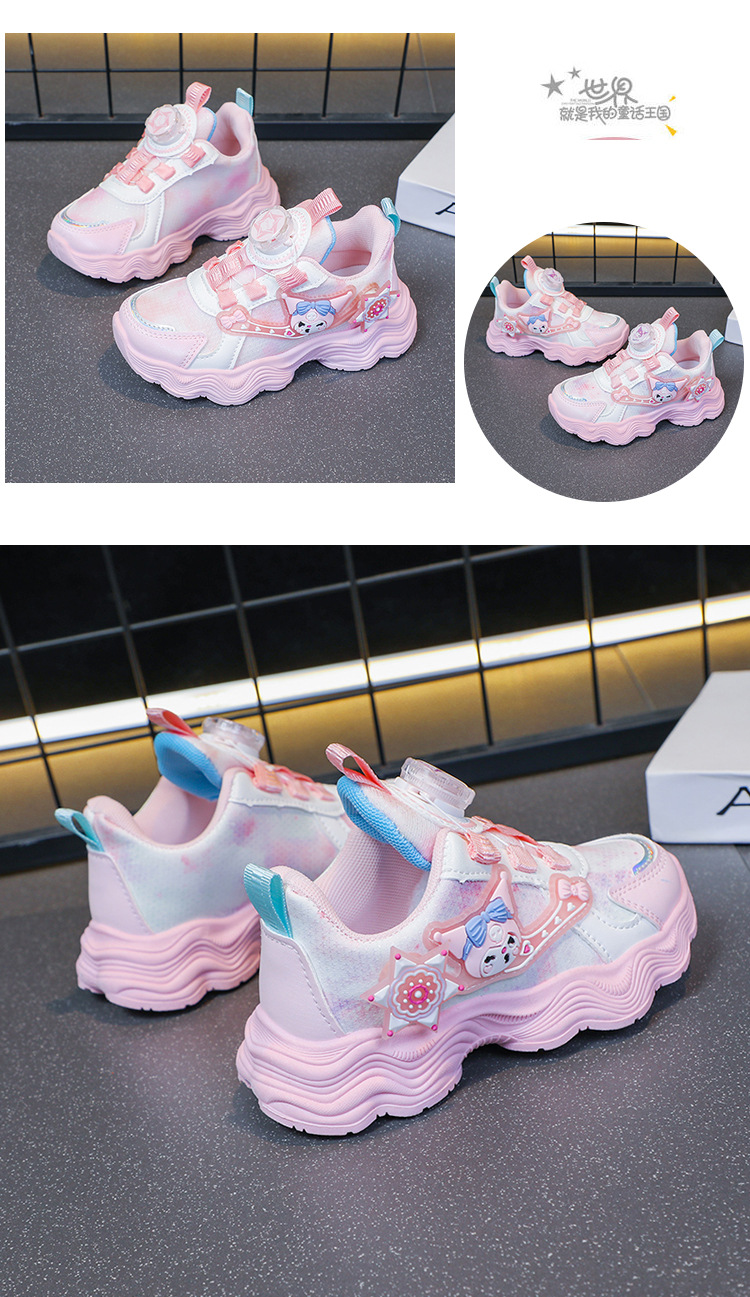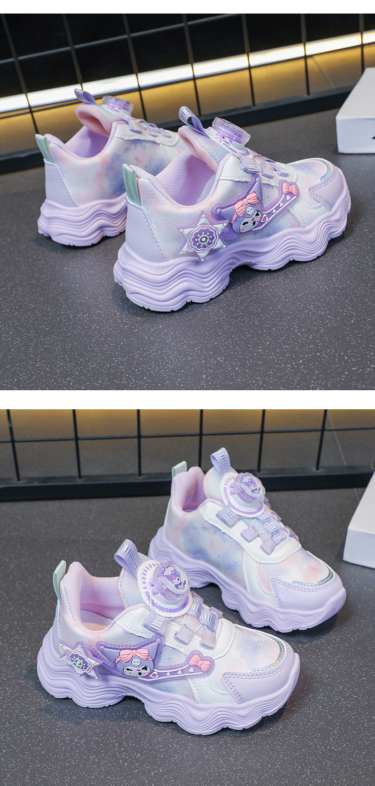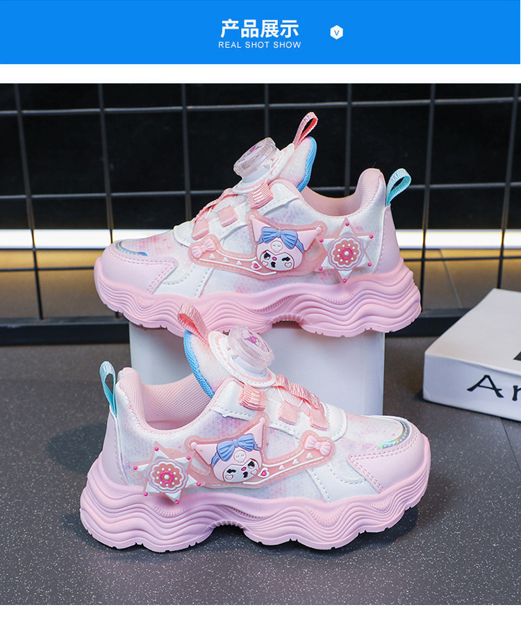 소녀를위한 Bumblebee 스포츠 신발 소녀를위한 메쉬 통기성 운동화 만화 Kuromi 회전 버클 가죽 아빠 신발스토어 가기
