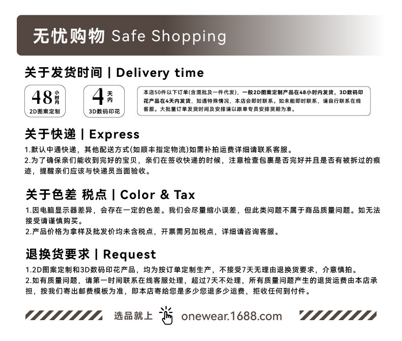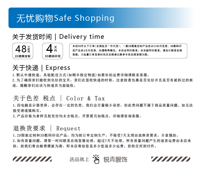 发货时间:空白T恤印制,1-2天内发货.全身3D数码印制,2-4天内发货,如时间较紧请联系客服