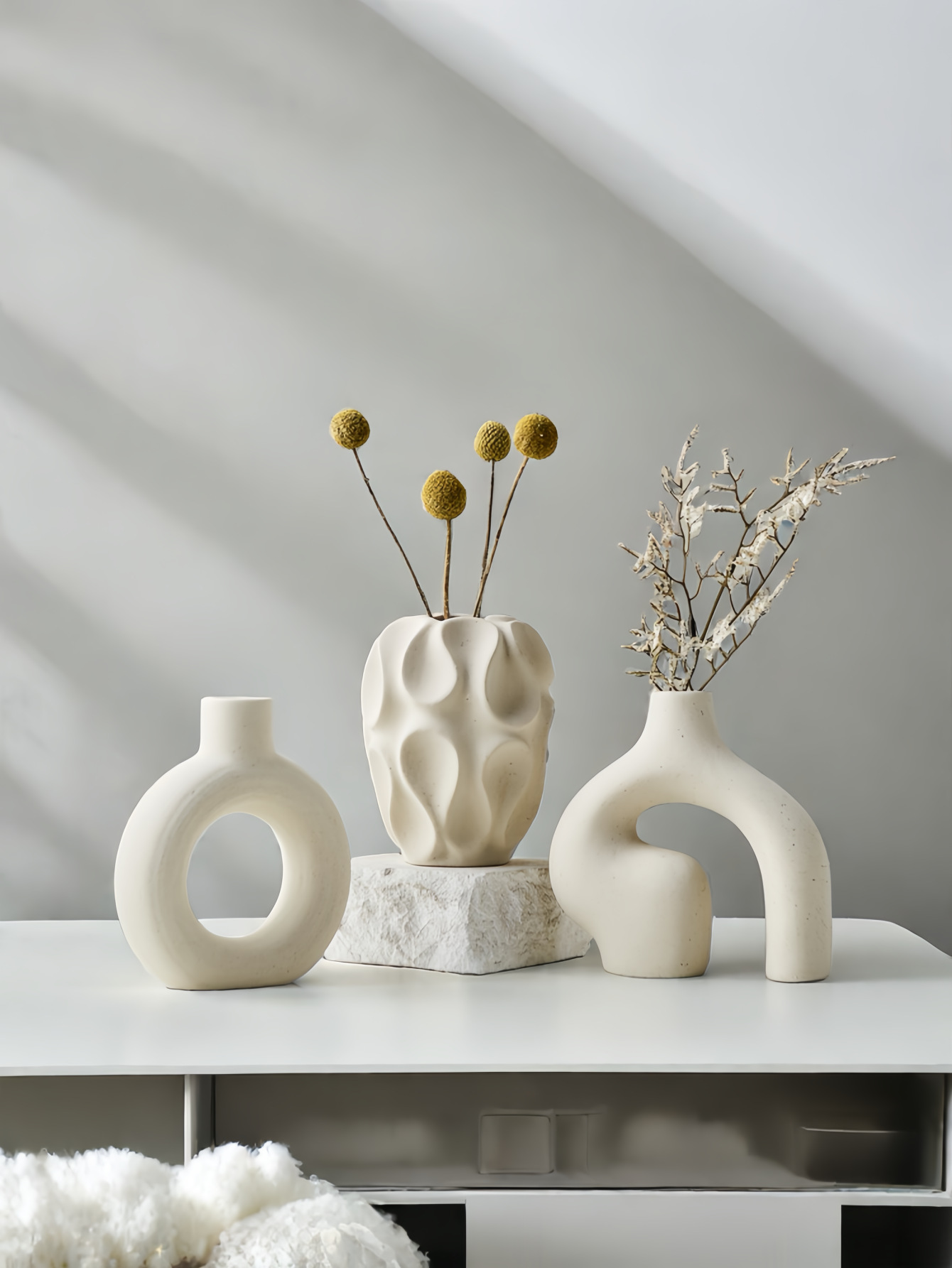 고급스러운 세라믹 드라이플라워 3종세트, 북유럽 심플 스타일 꽃병 장식품, 홈인 스타일 화이트 꽃꽂이스토어 가기