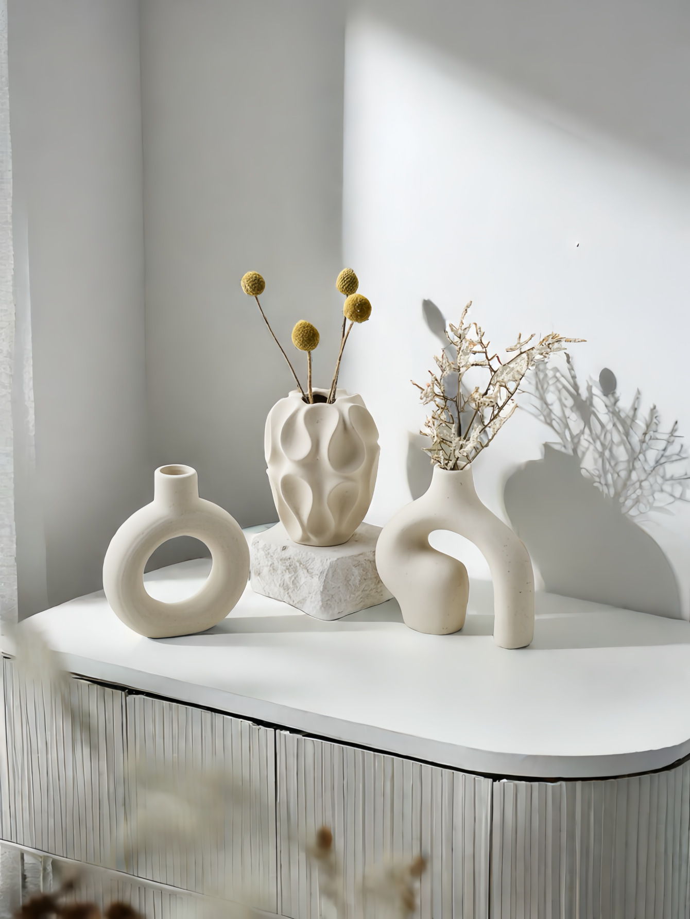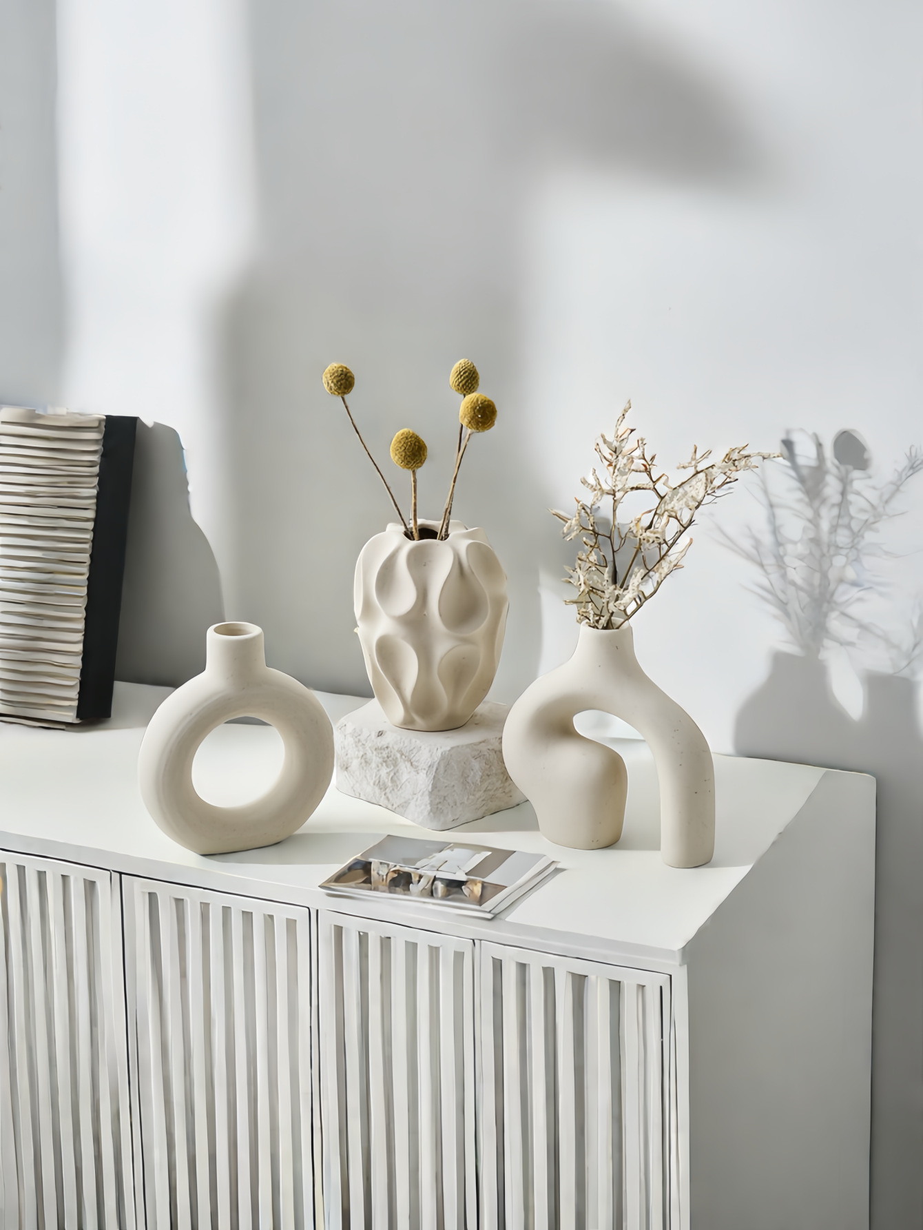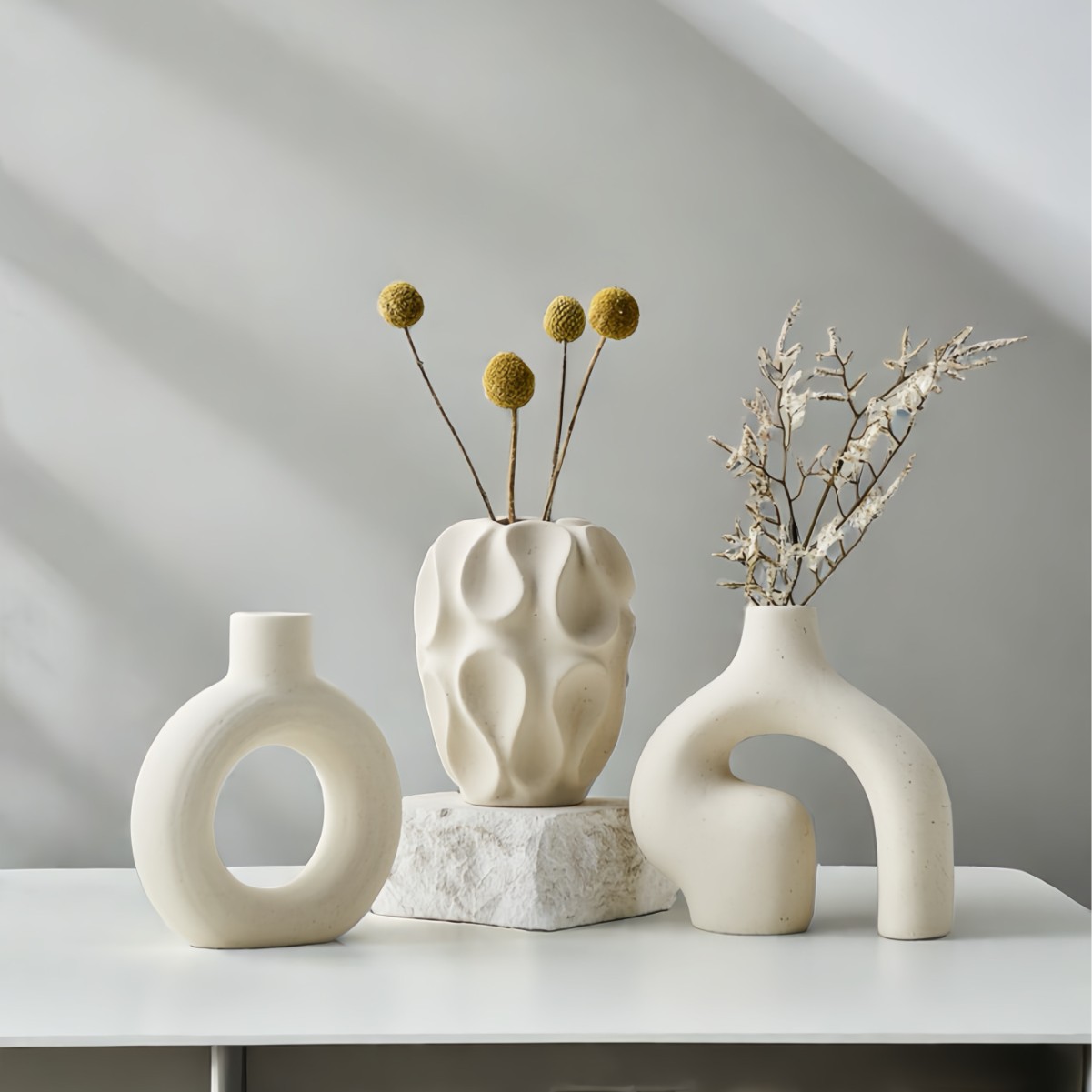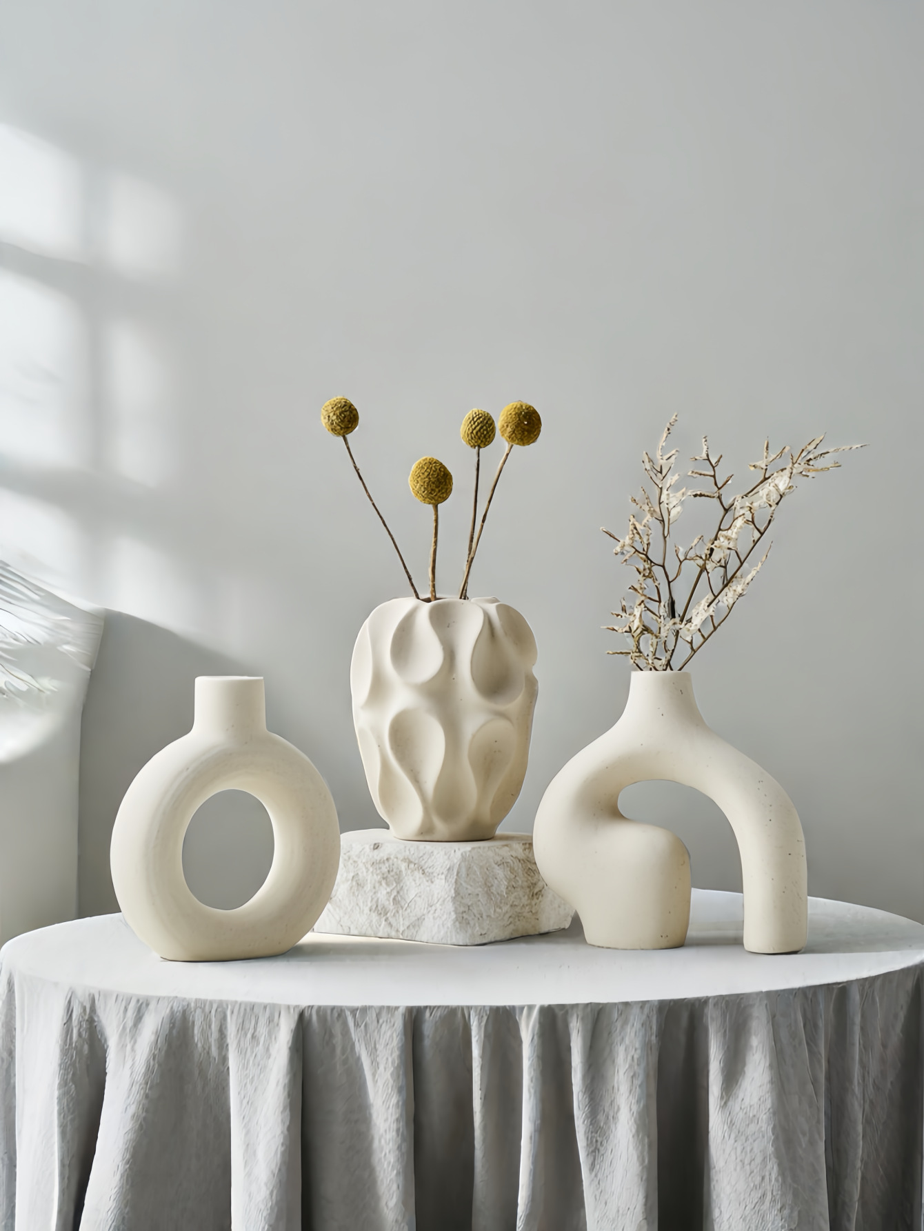 고급스러운 세라믹 드라이플라워 3종세트, 북유럽 심플 스타일 꽃병 장식품, 홈인 스타일 화이트 꽃꽂이