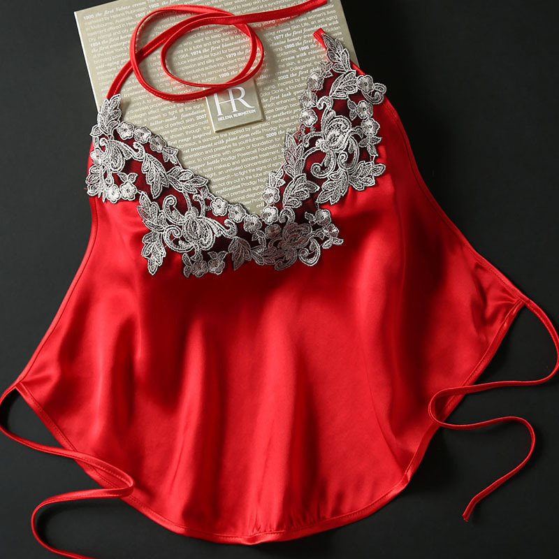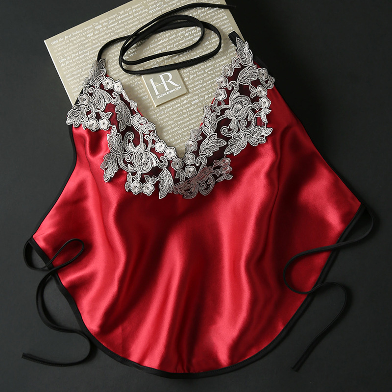 자수 실크 벨리 밴드 여성 레드 100 뽕나무 실크 웨딩 축제 여름 섹시한 성인 슬링 턱받이 얇은