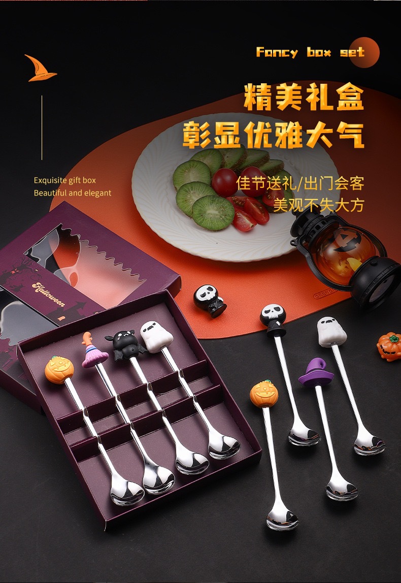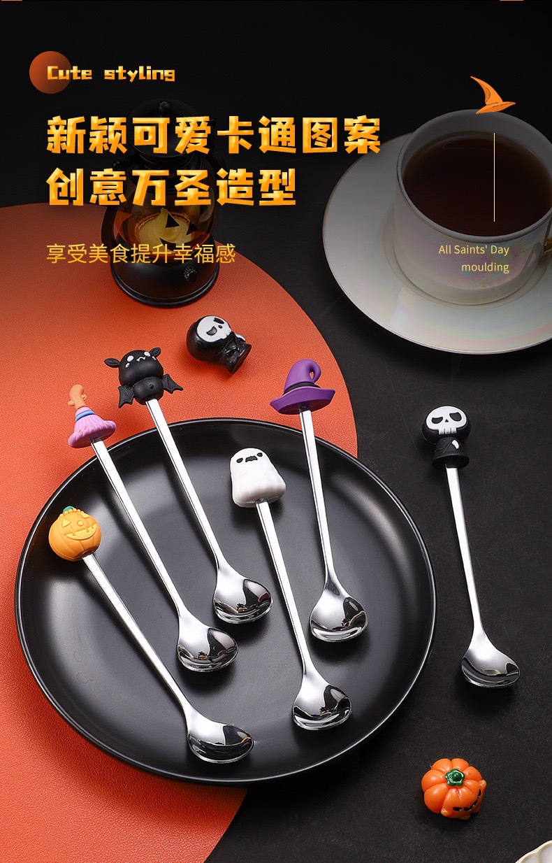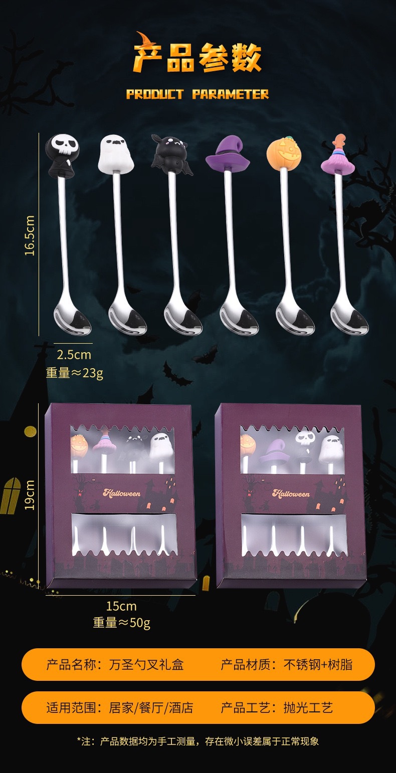 304 스테인레스 스틸 선물 스푼 혼합 숟가락 디저트 스푼 할로윈 식기 세트 혼합 스푼 커피 스푼 케이크 포크스토어 가기