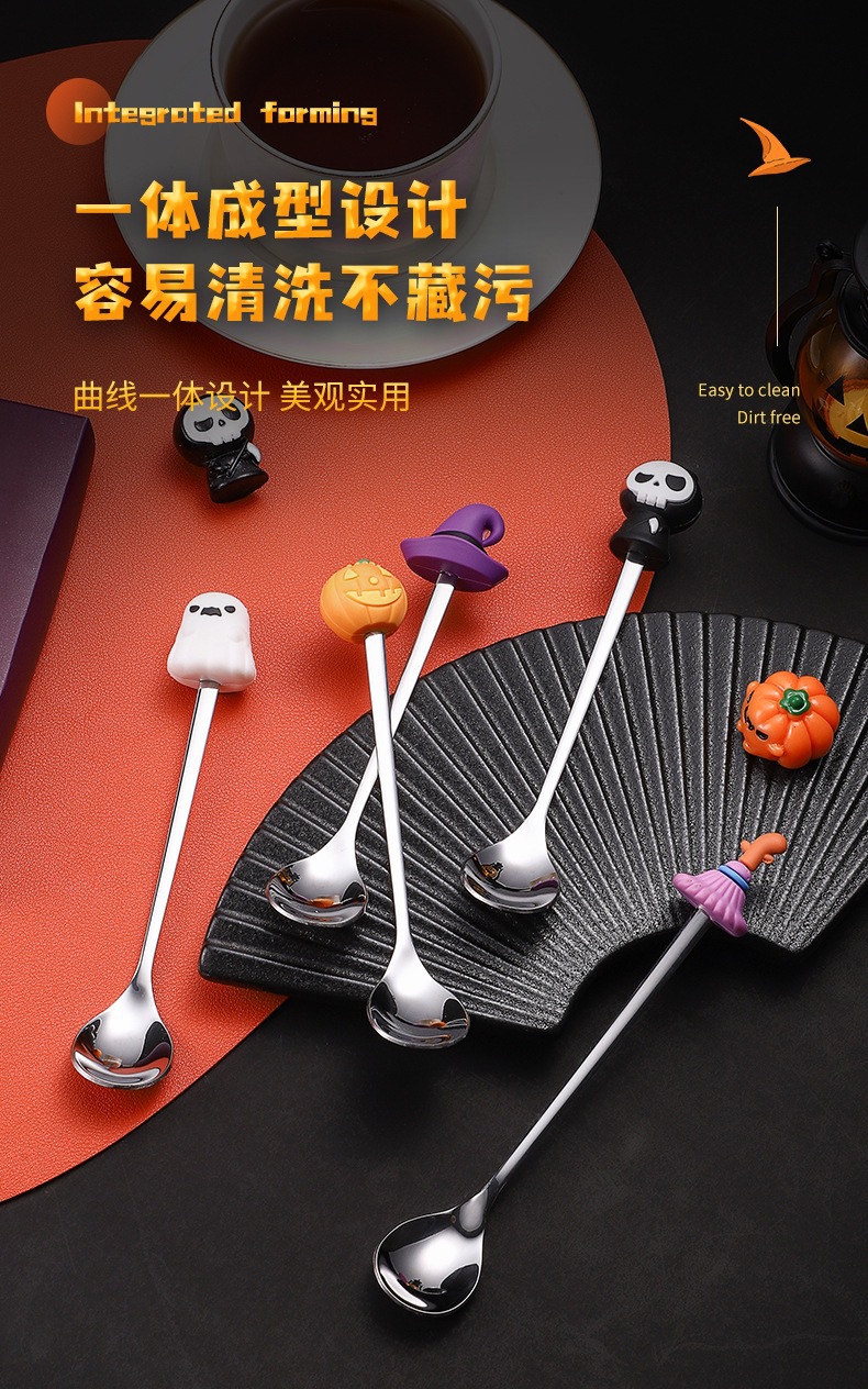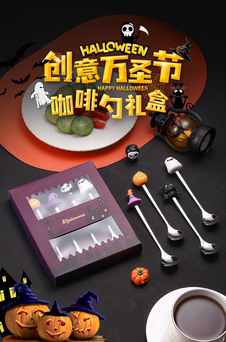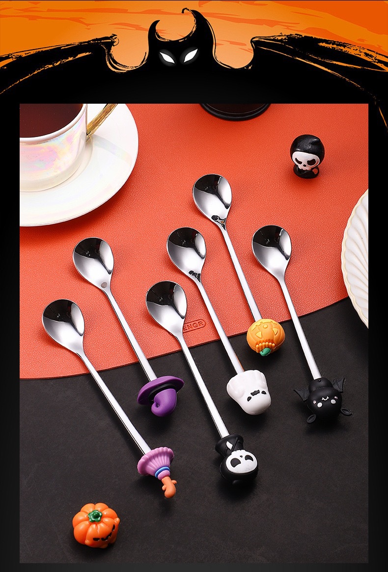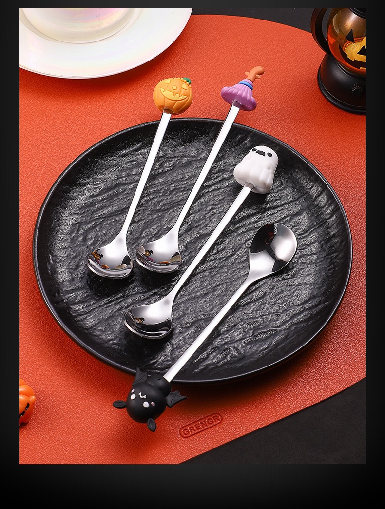 304 스테인레스 스틸 선물 스푼 혼합 숟가락 디저트 스푼 할로윈 식기 세트 혼합 스푼 커피 스푼 케이크 포크스토어 가기