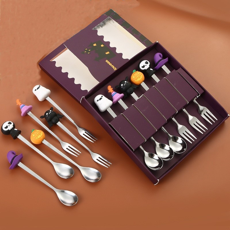 304 스테인레스 스틸 선물 스푼 혼합 숟가락 디저트 스푼 할로윈 식기 세트 혼합 스푼 커피 스푼 케이크 포크