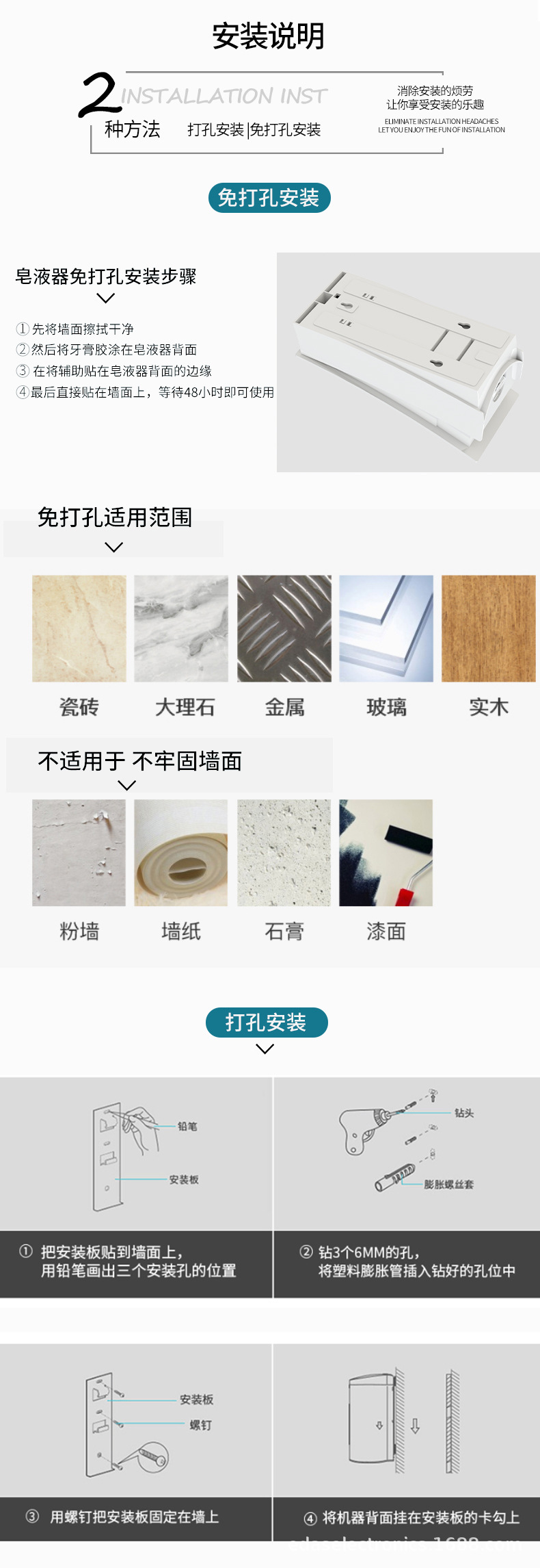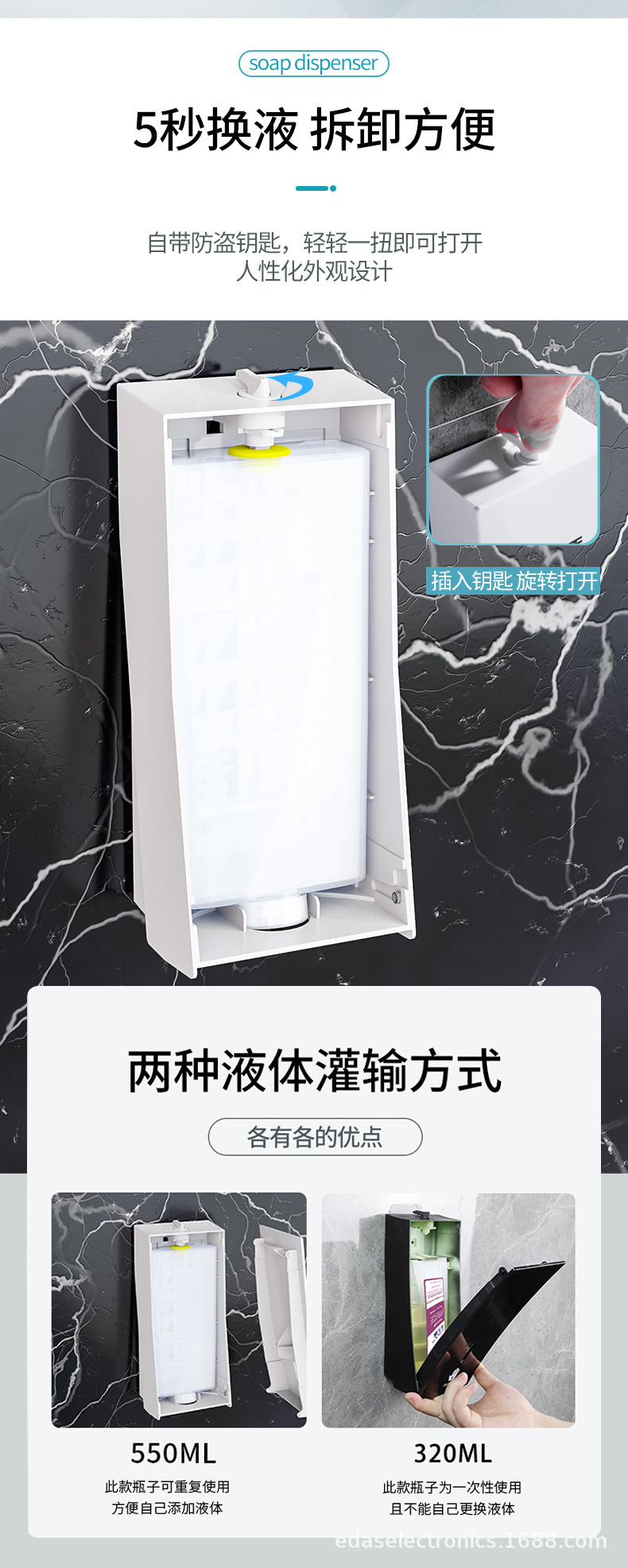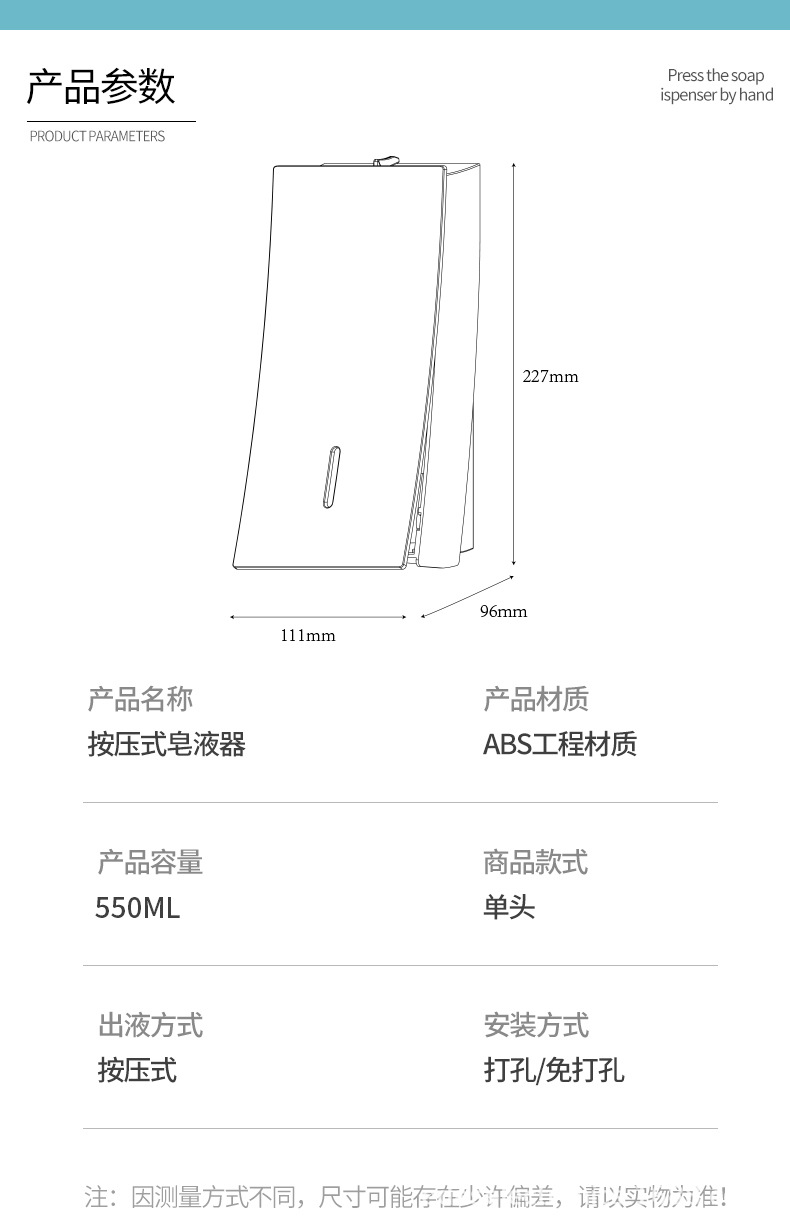 검정색 프레스 비누 디스펜서 크로스보더 욕실 벽걸이 형 수동 액체 공급 상자 주방 손 소독제 기계 병 펀치 없음