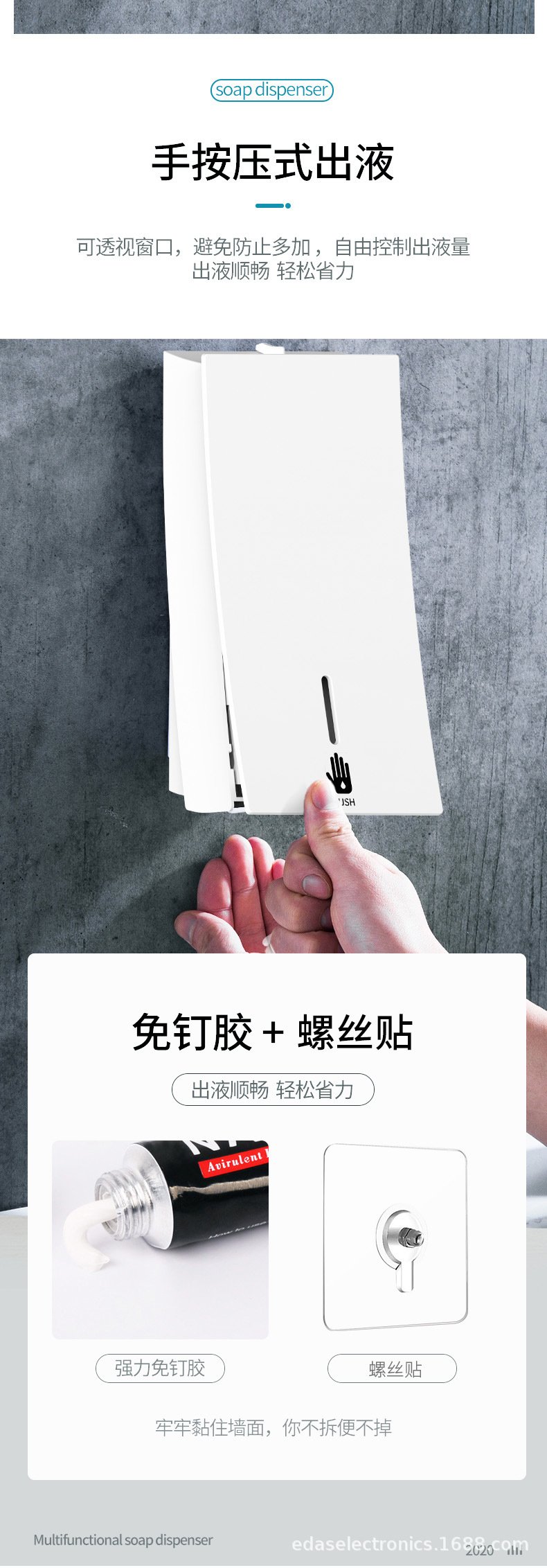 검정색 프레스 비누 디스펜서 크로스보더 욕실 벽걸이 형 수동 액체 공급 상자 주방 손 소독제 기계 병 펀치 없음스토어 가기