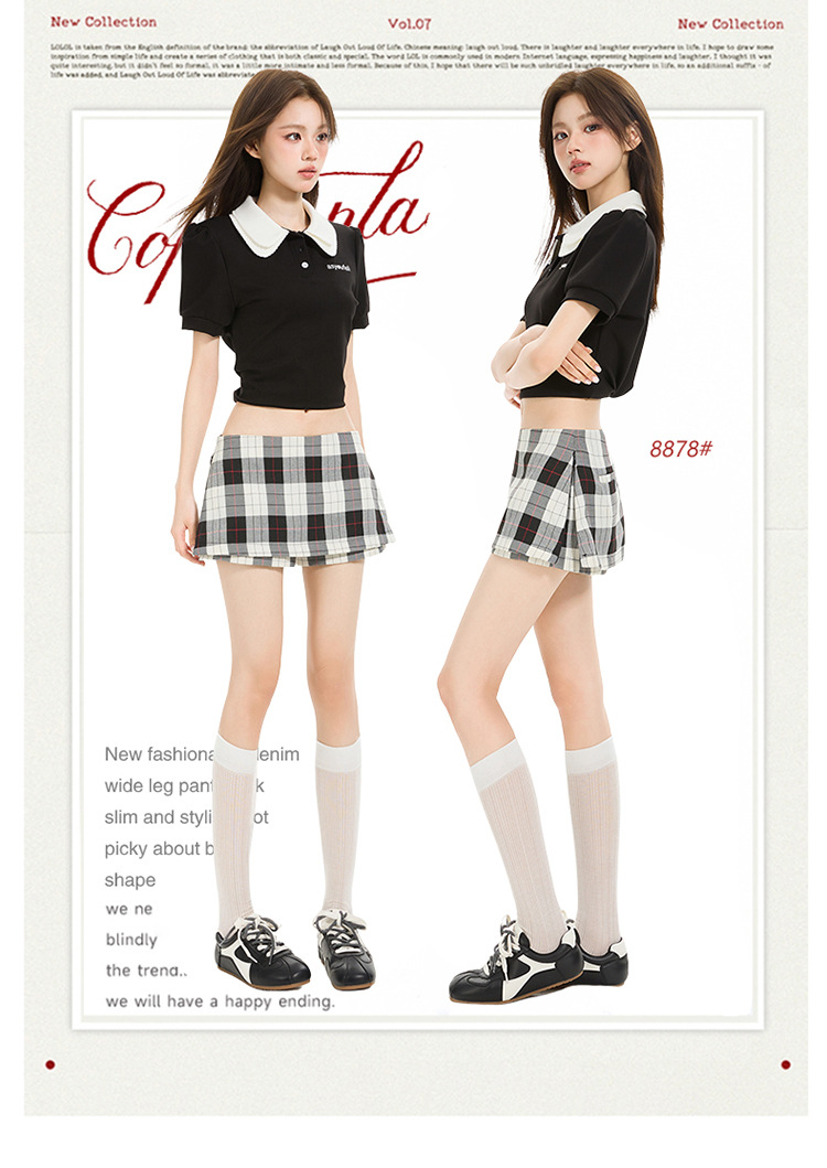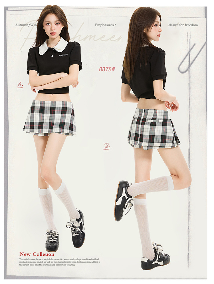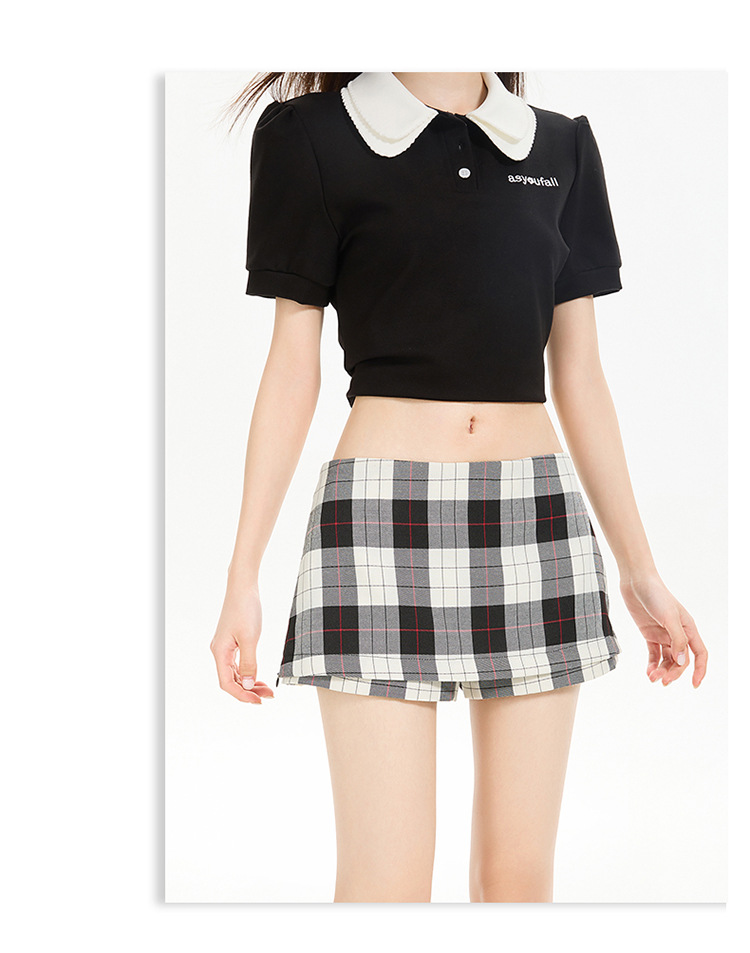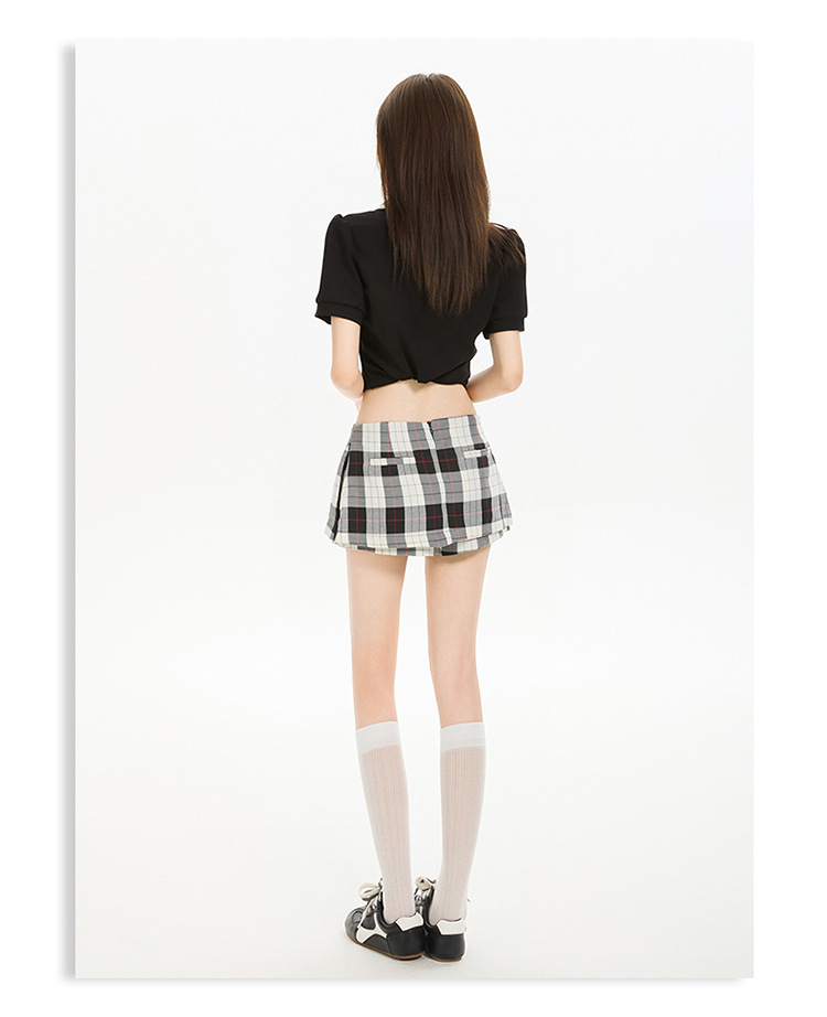 리시 # 사이드 지퍼 투웨어 미니 스커트 흑백 체크 무늬 2025 신작 A라인 반바지 스커트 여성 힙 스커트스토어 가기