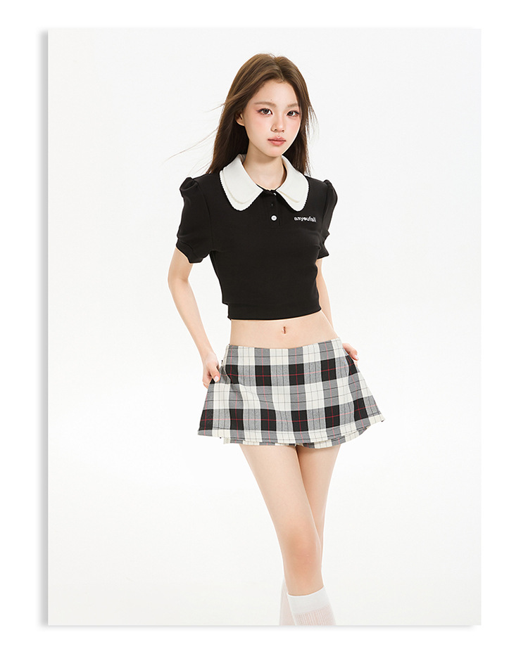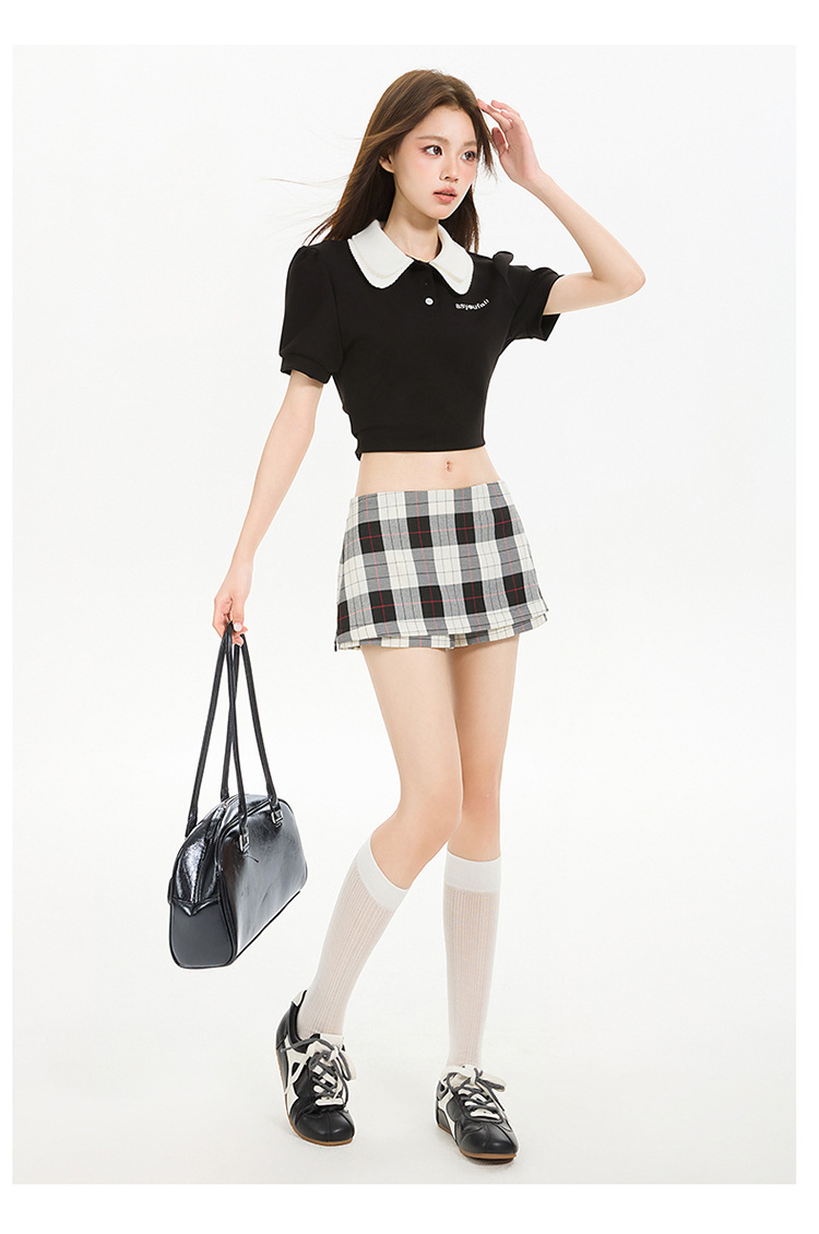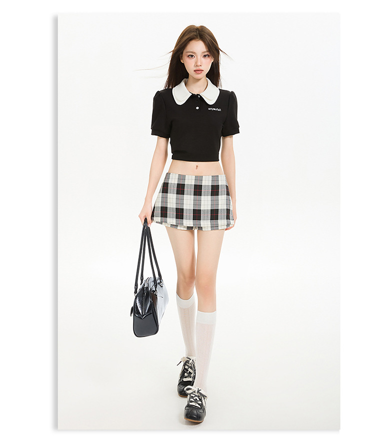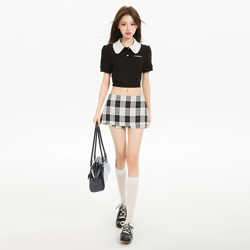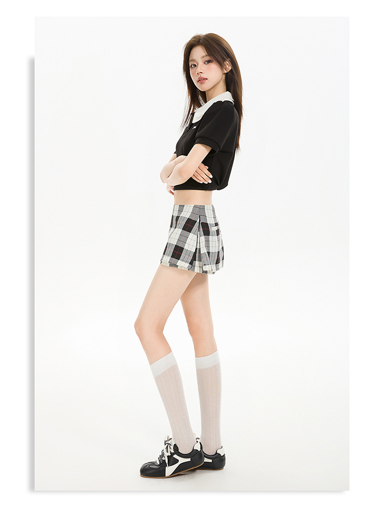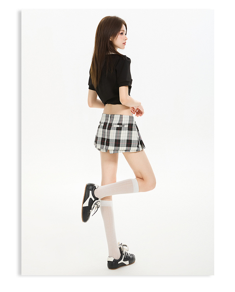 리시 # 사이드 지퍼 투웨어 미니 스커트 흑백 체크 무늬 2025 신작 A라인 반바지 스커트 여성 힙 스커트