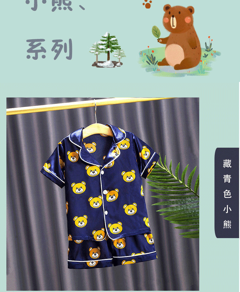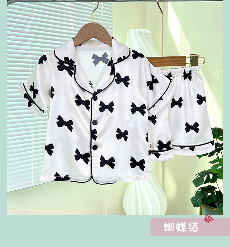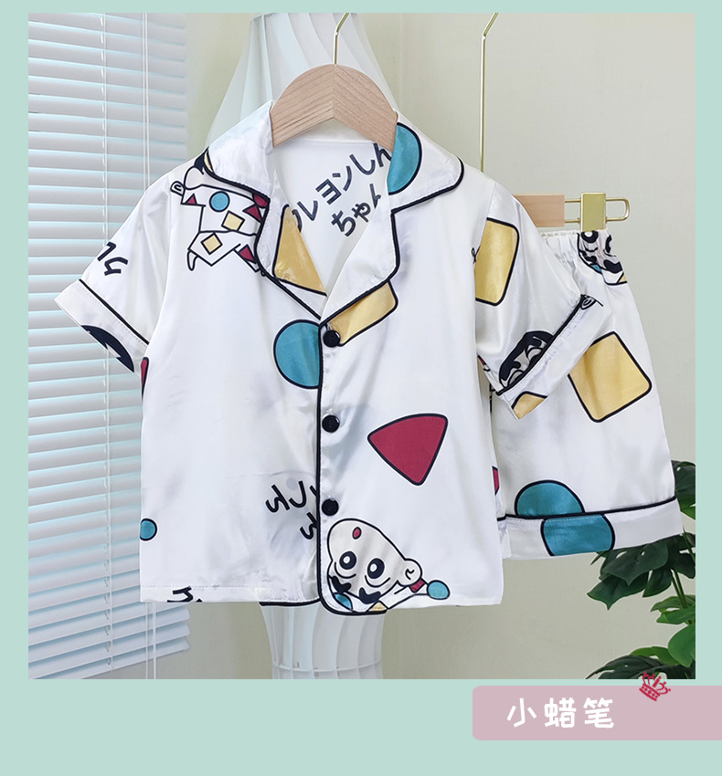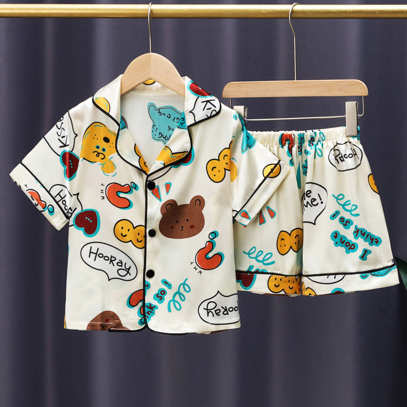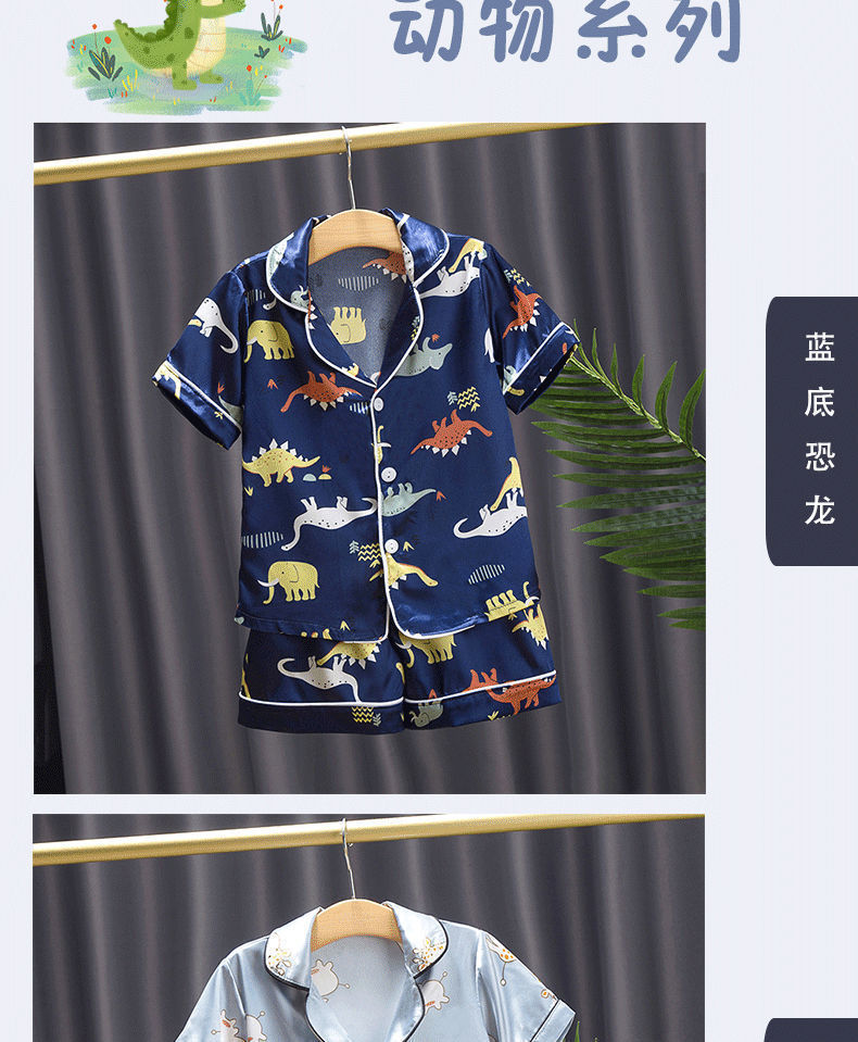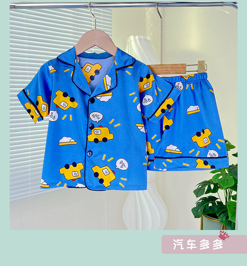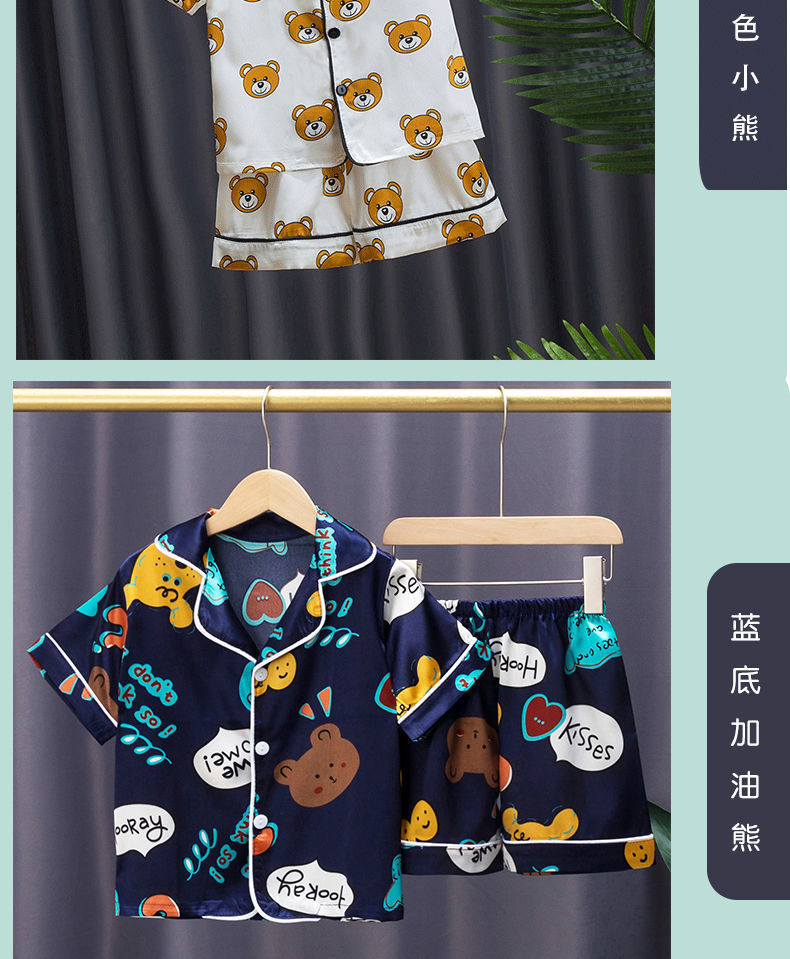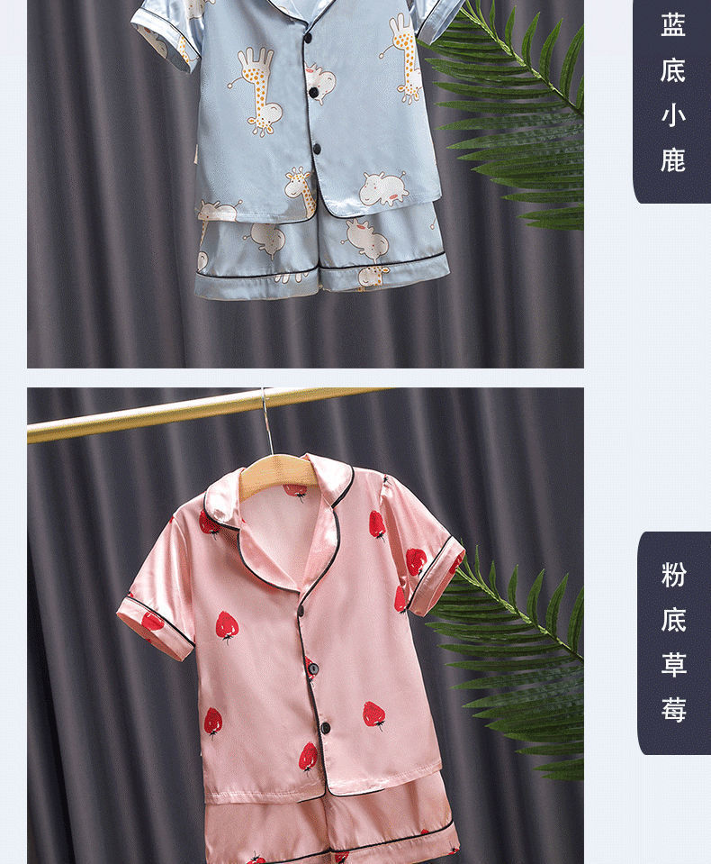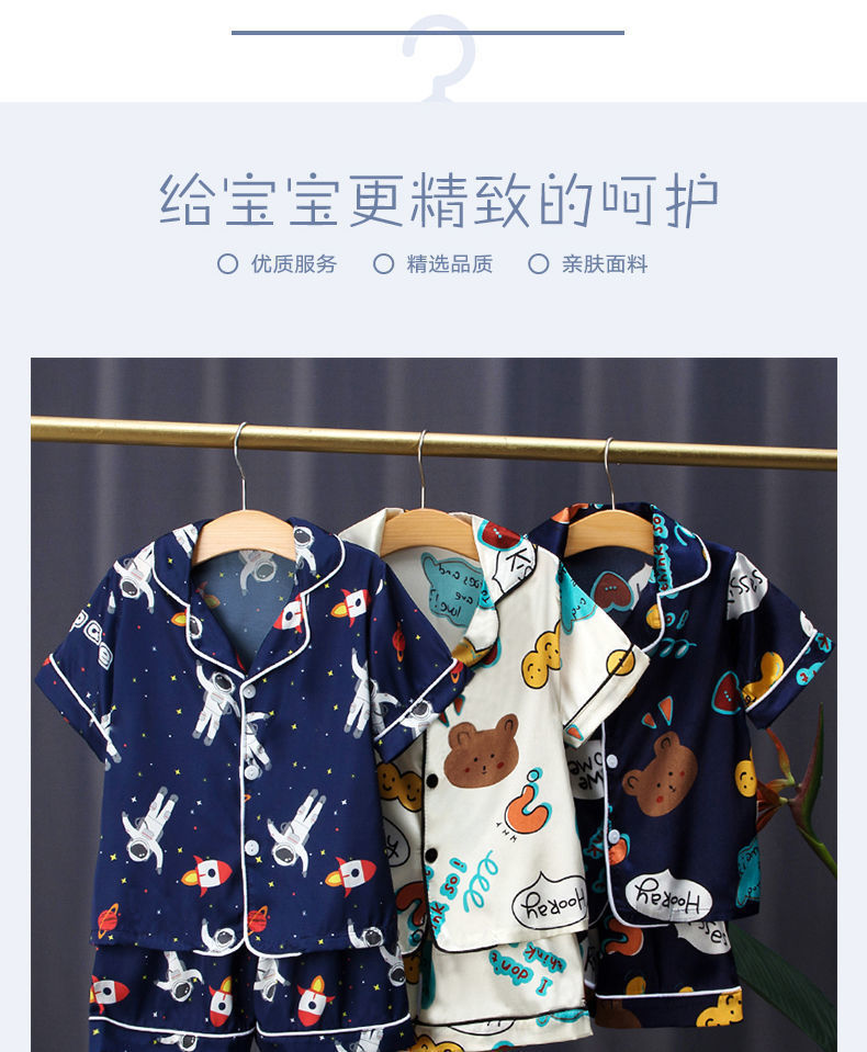 여름 어린이 잠옷 얇은 여아 소년 아기 반팔 세트 작고 큰 소년 아이스 실크 에어컨 홈 의류스토어 가기
