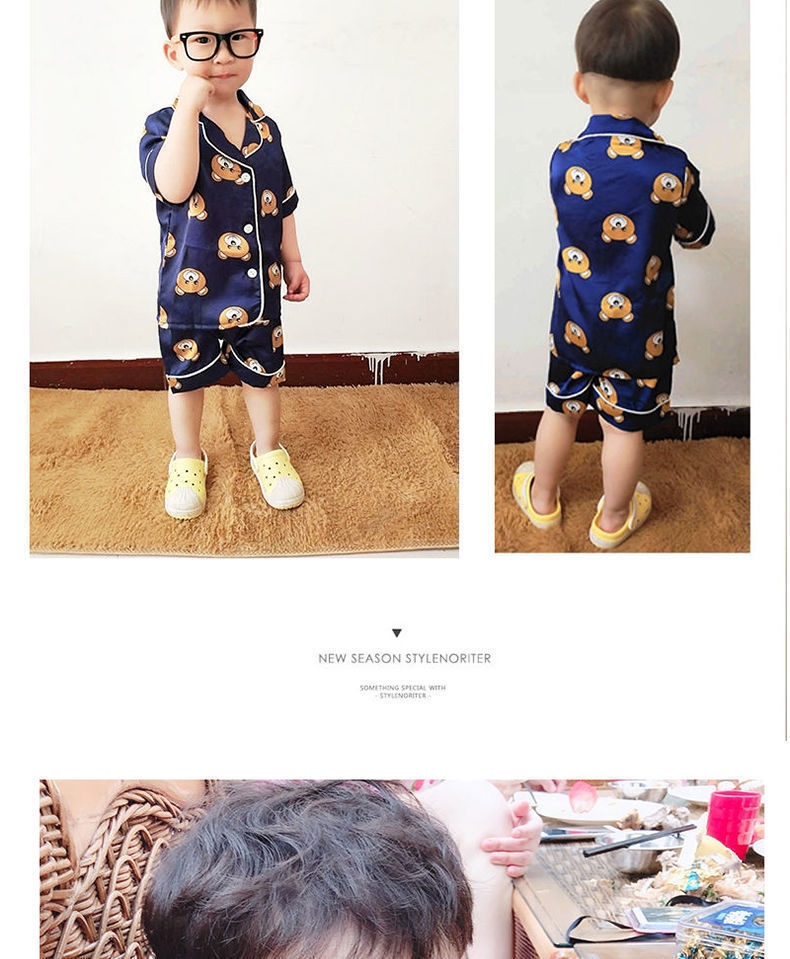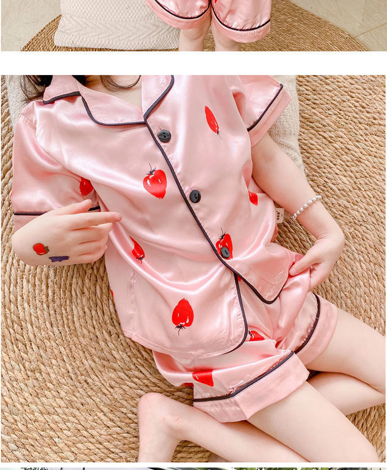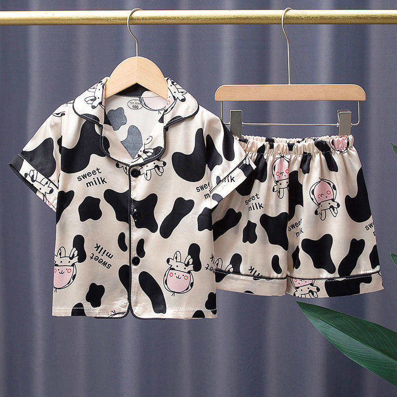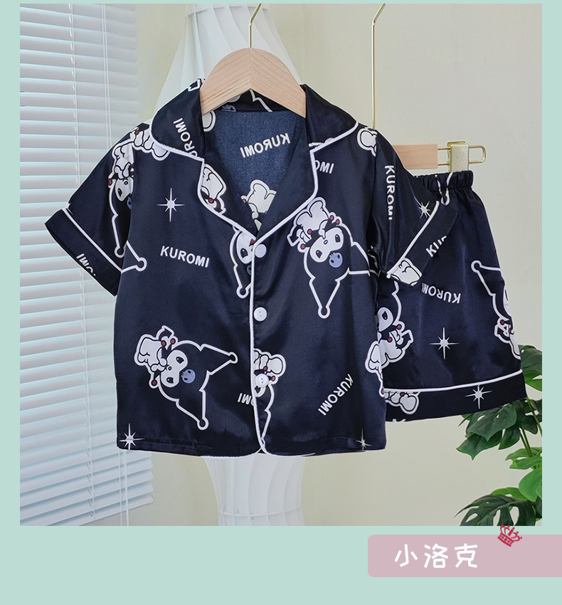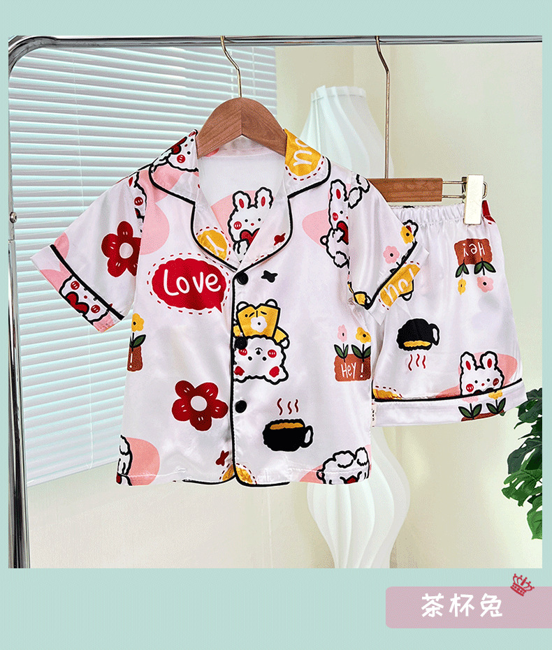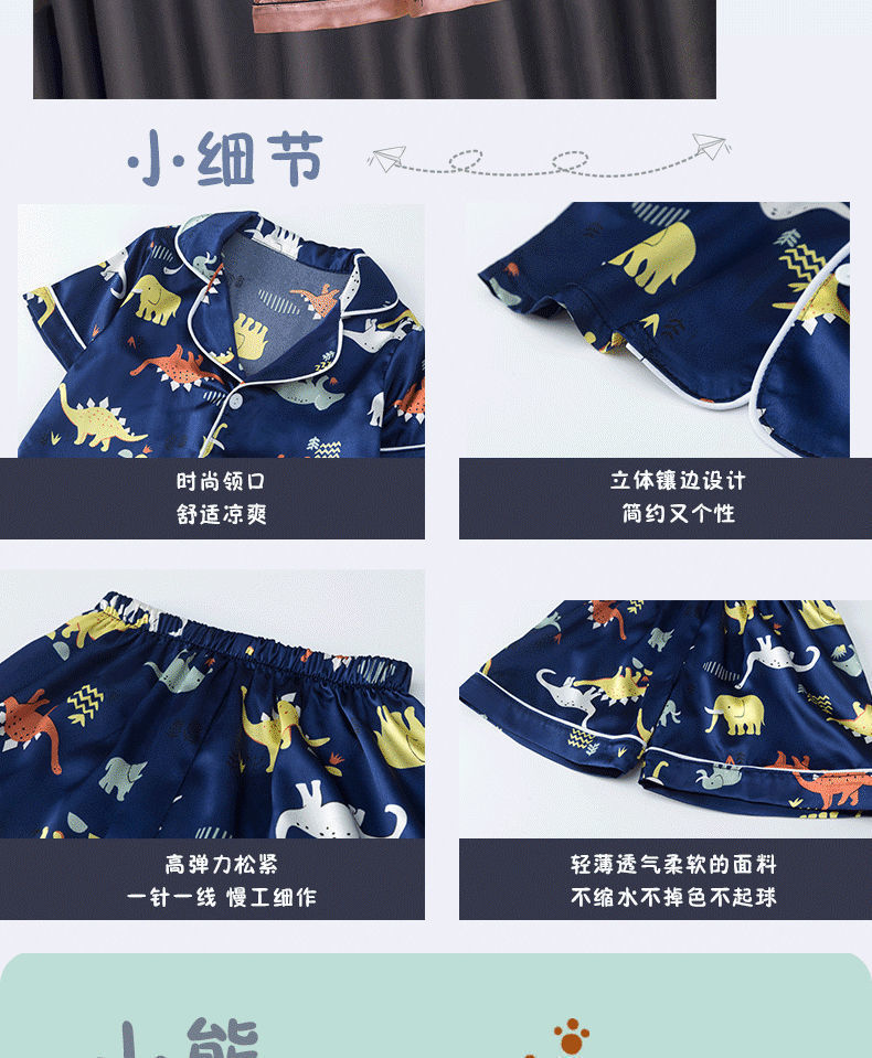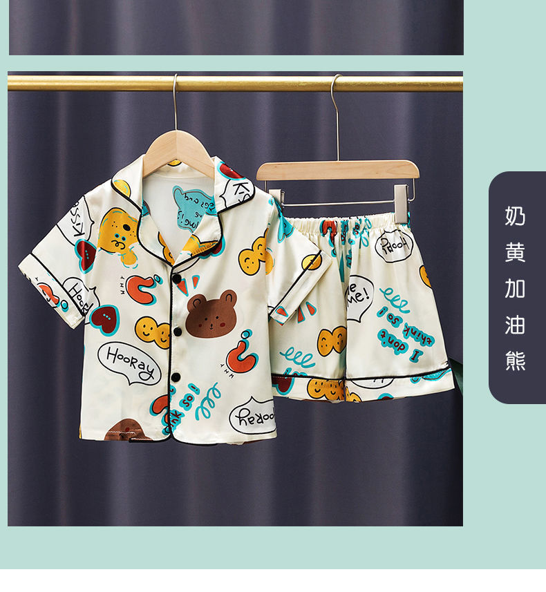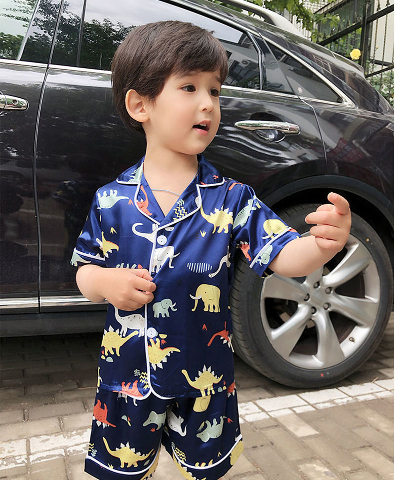 여름 어린이 잠옷 얇은 여아 소년 아기 반팔 세트 작고 큰 소년 아이스 실크 에어컨 홈 의류스토어 가기
