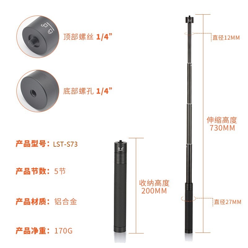 73cm 알루미늄 합금 연장 막대 Dajiang 마술 발톱 안정제 짐벌 확장 막대 라이브 휴대 전화 셀카 스틱