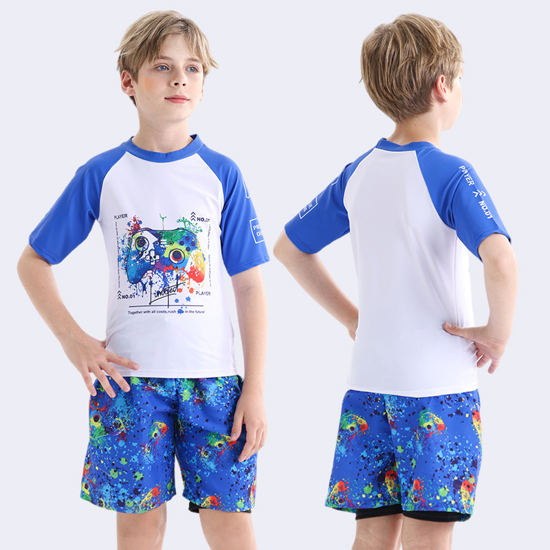 어린이 수영복 소년 2025 새로운 중대형 어린이 분할 전문 수영 훈련복 속건성 수영복 세트스토어 가기