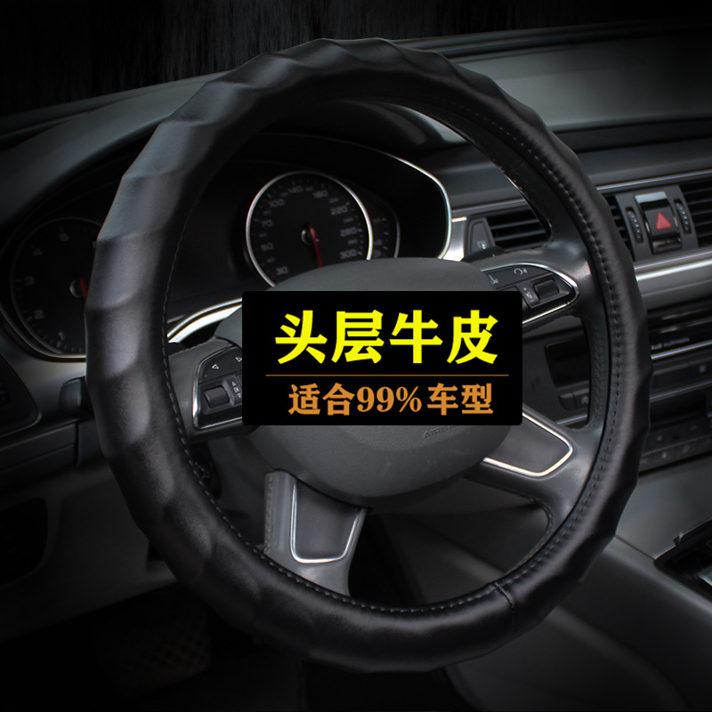 자동차 1층 소가죽 가죽 스티어링 휠 커버, 남성용 및 여성용 올 시즌 범용, 여름용 미끄럼 방지 땀 흡수 가죽 커버