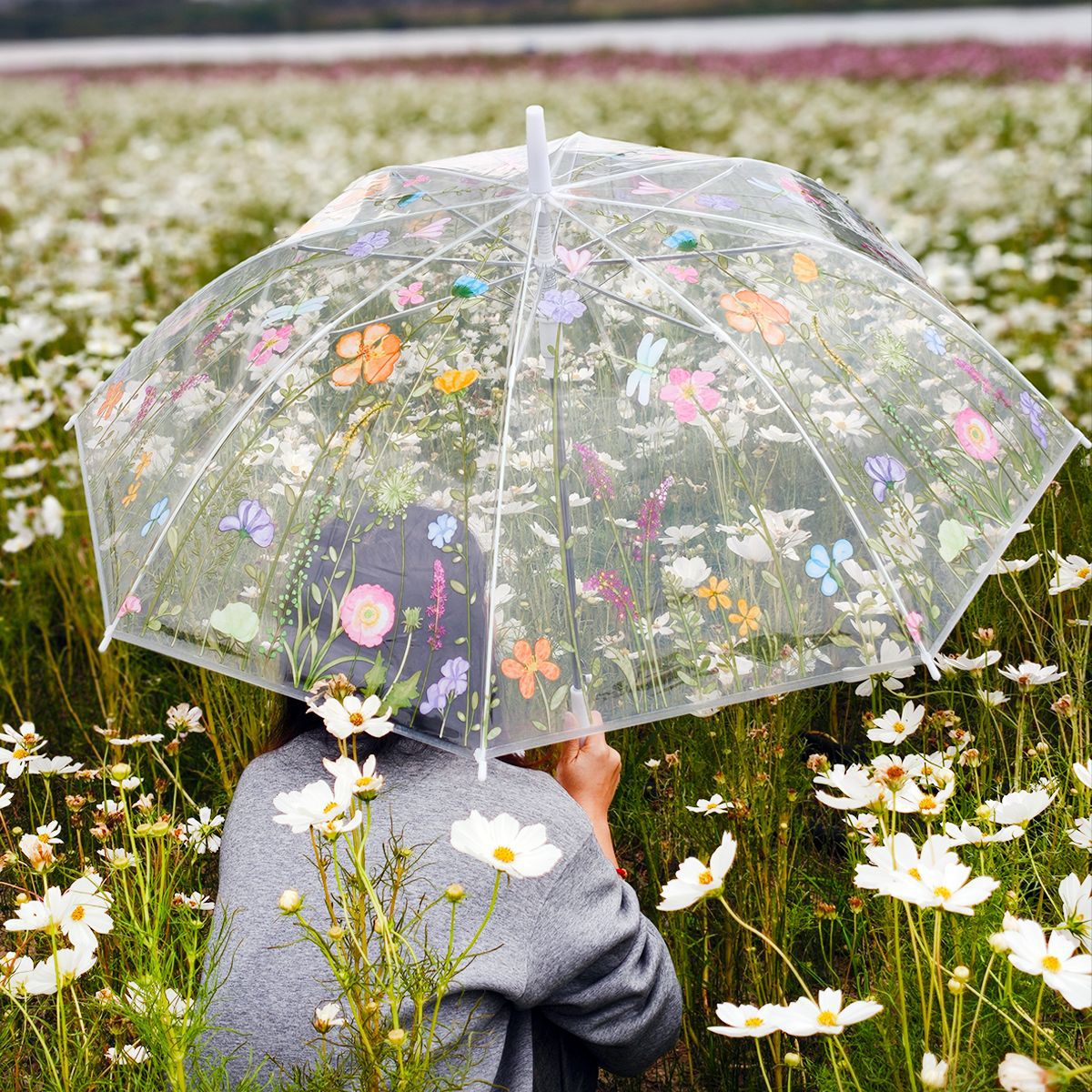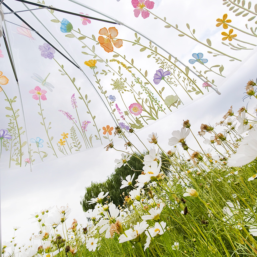 공장 도매 투명 우산 21 인치 스트레이트 로드 자동 우산 꽃과 식물 접이식 우산 3 배 작은 투명 투명 우산스토어 가기