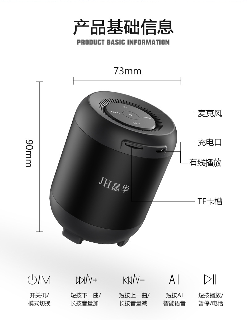 JH/Jinghua 오디오 휴대용 데스크탑 다기능 스피커 서브 우퍼 카드 다기능 무선 블루투스 AI 스마트