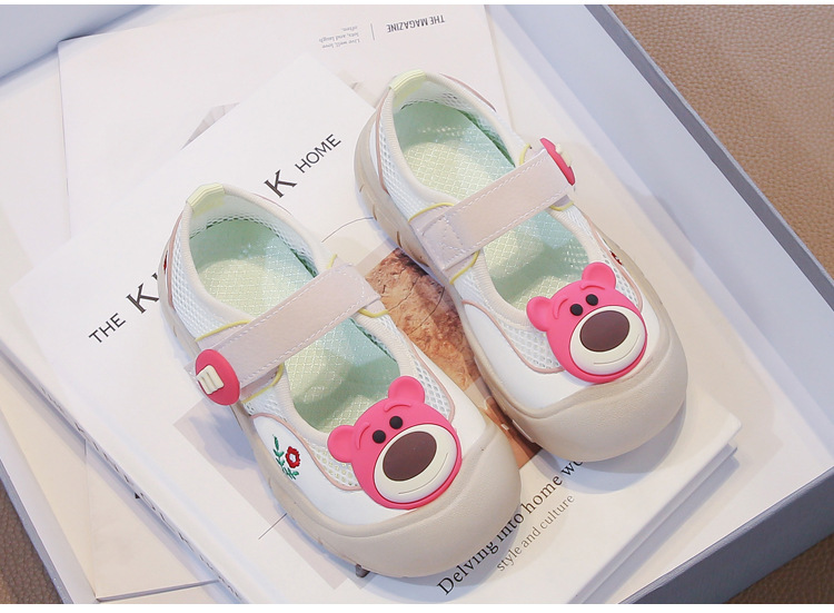 딸기 곰 소녀 캔버스 신발 2025 봄과 가을 새로운 미끄럼 방지 캐주얼 신발 어린이 신발 벨크로 트렌드