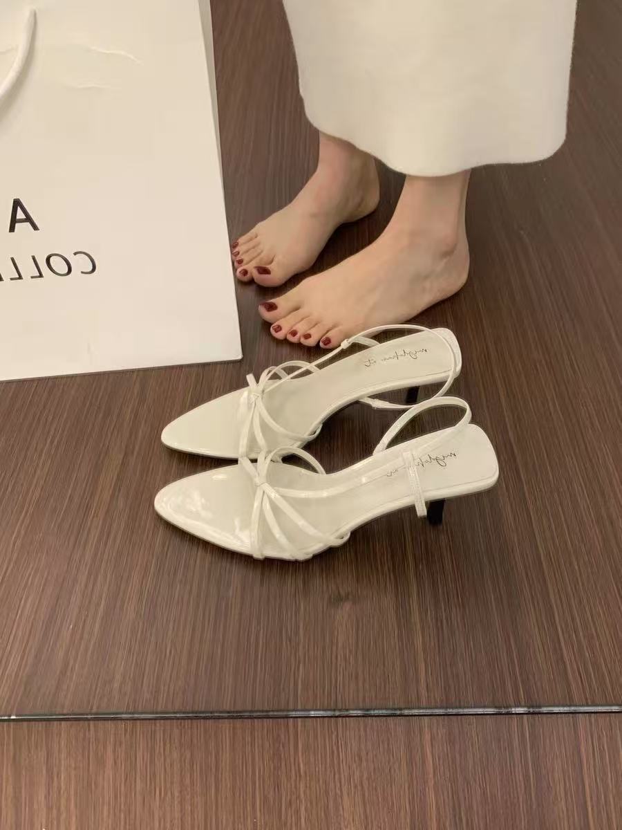 2025년 여름 신상 여성용 보라색 하이힐, 스퀘어 토, 얇은 스트랩, 오픈 토, 스키니 힐, 스커트 슬리퍼스토어 가기
