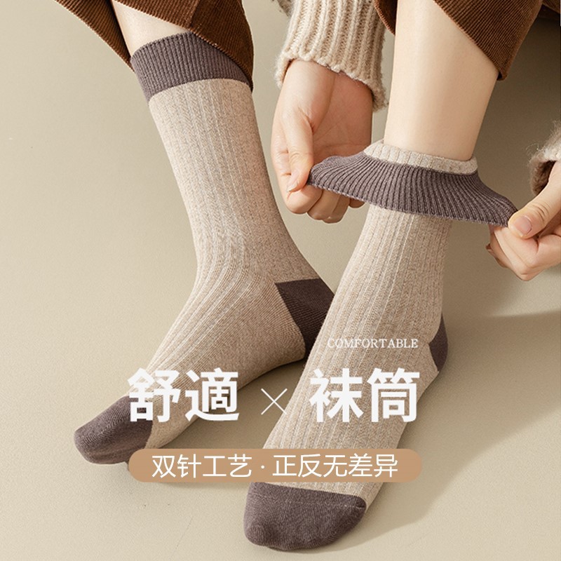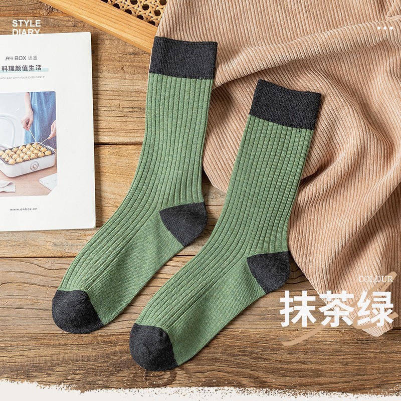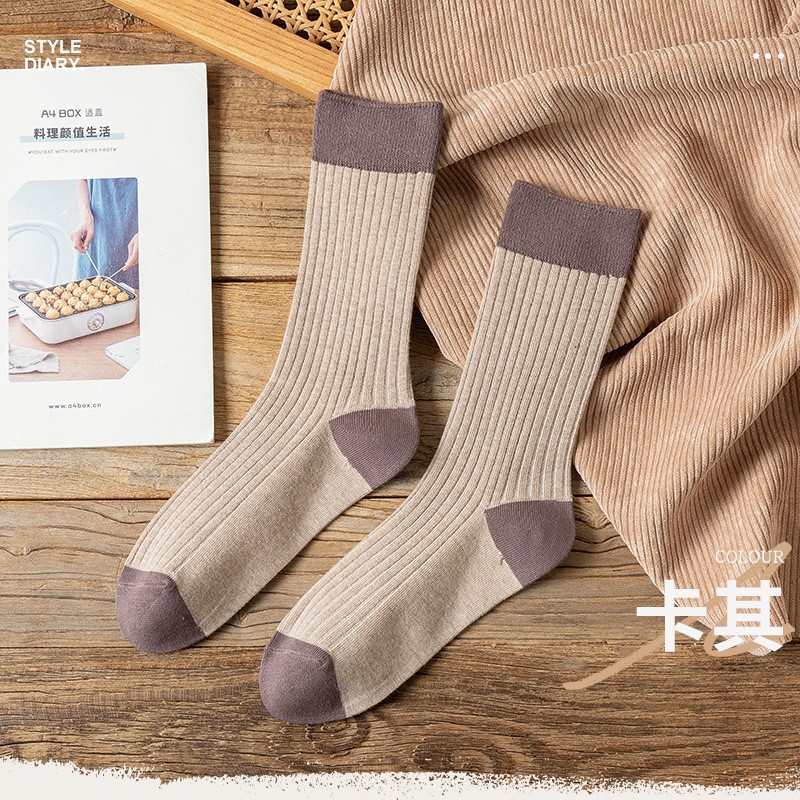 여성용 긴 양말, 단색, 다용도, 봄, 가을 양말, 중간 길이, 일본 대학 스타일, 겉옷, 대비 색상, 가을, 겨울 긴 양말, 트렌디스토어 가기