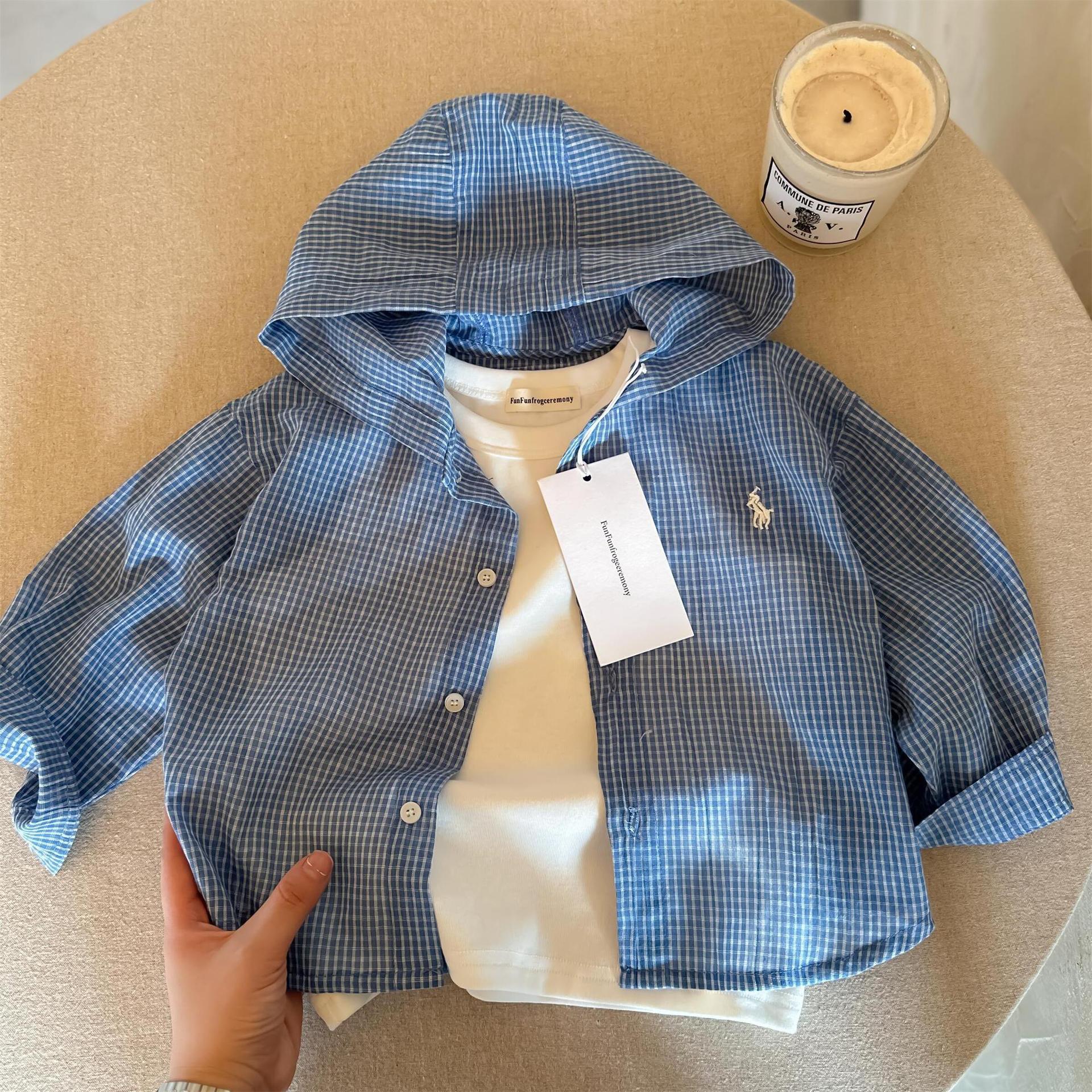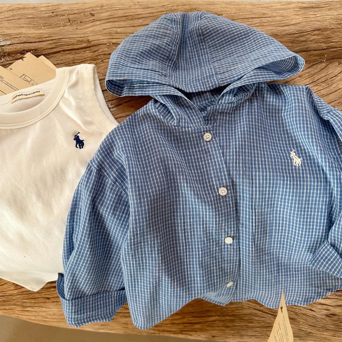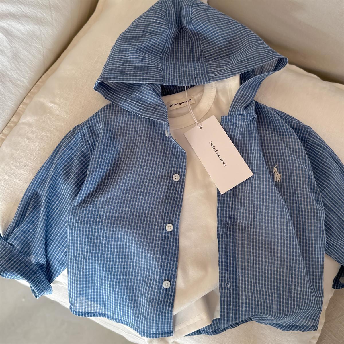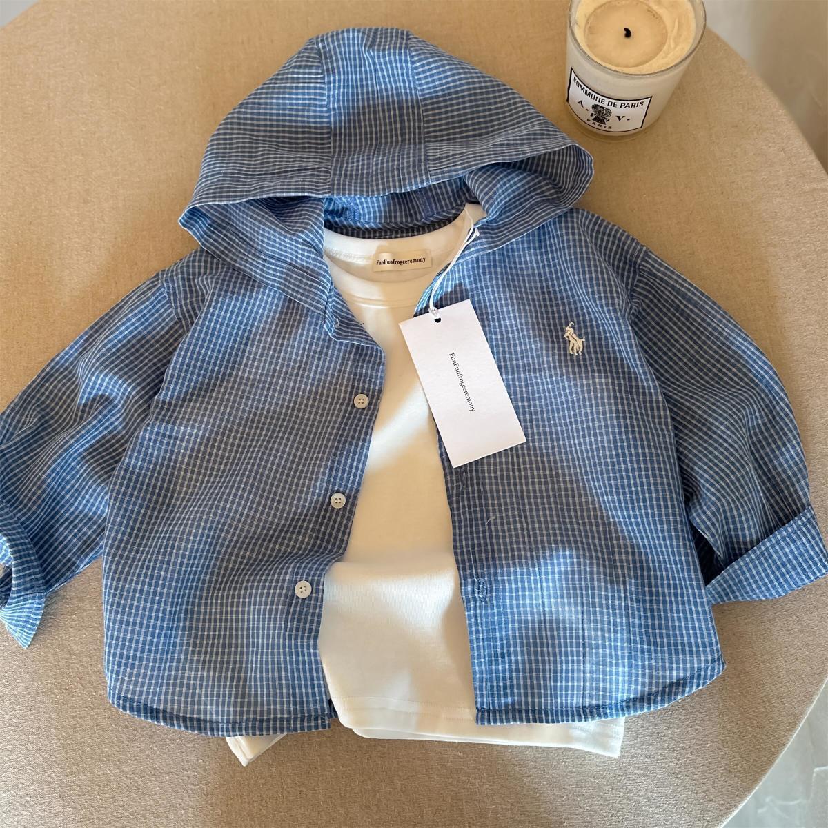 아동용 얇은 코트 2025 봄 여름 소년 소녀 일본식 격자 무늬 자외선 차단 의류 아기 후드 셔츠 아동용 카디건 유행스토어 가기