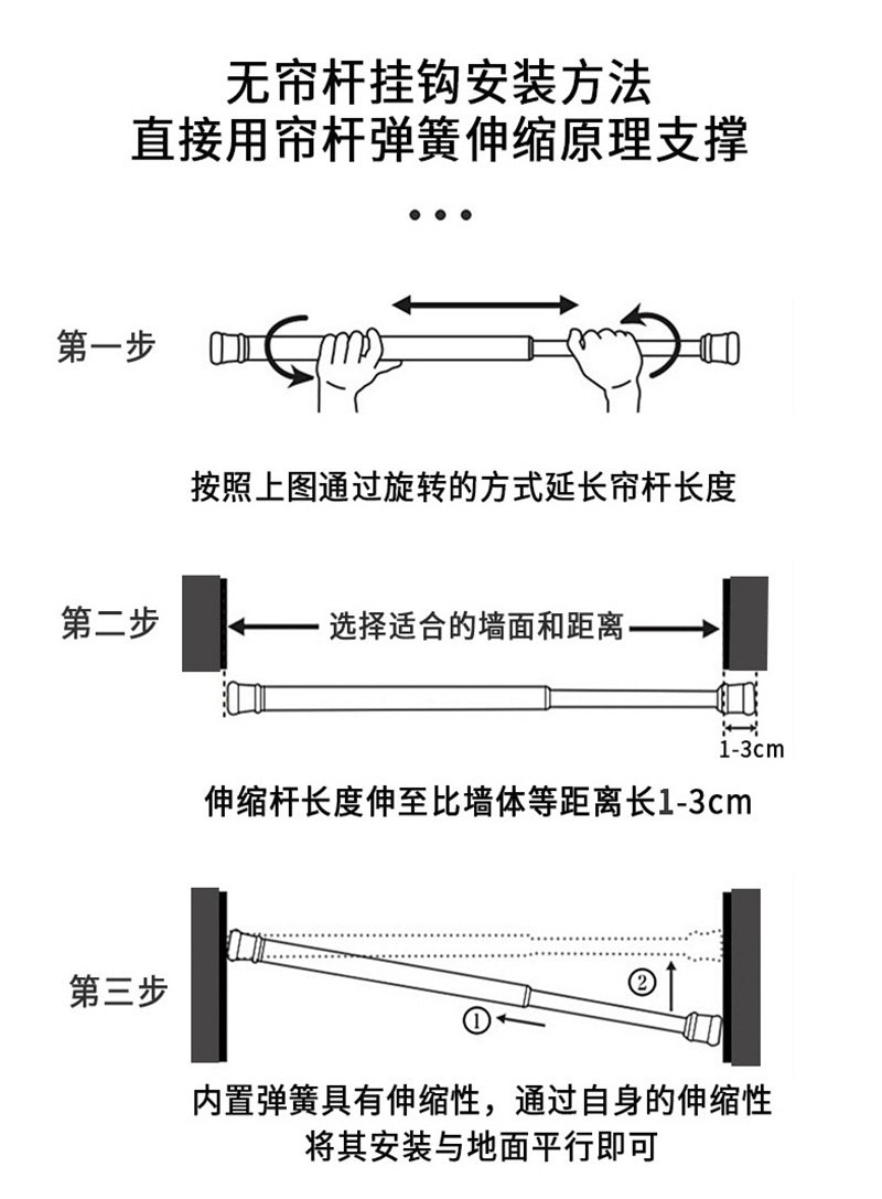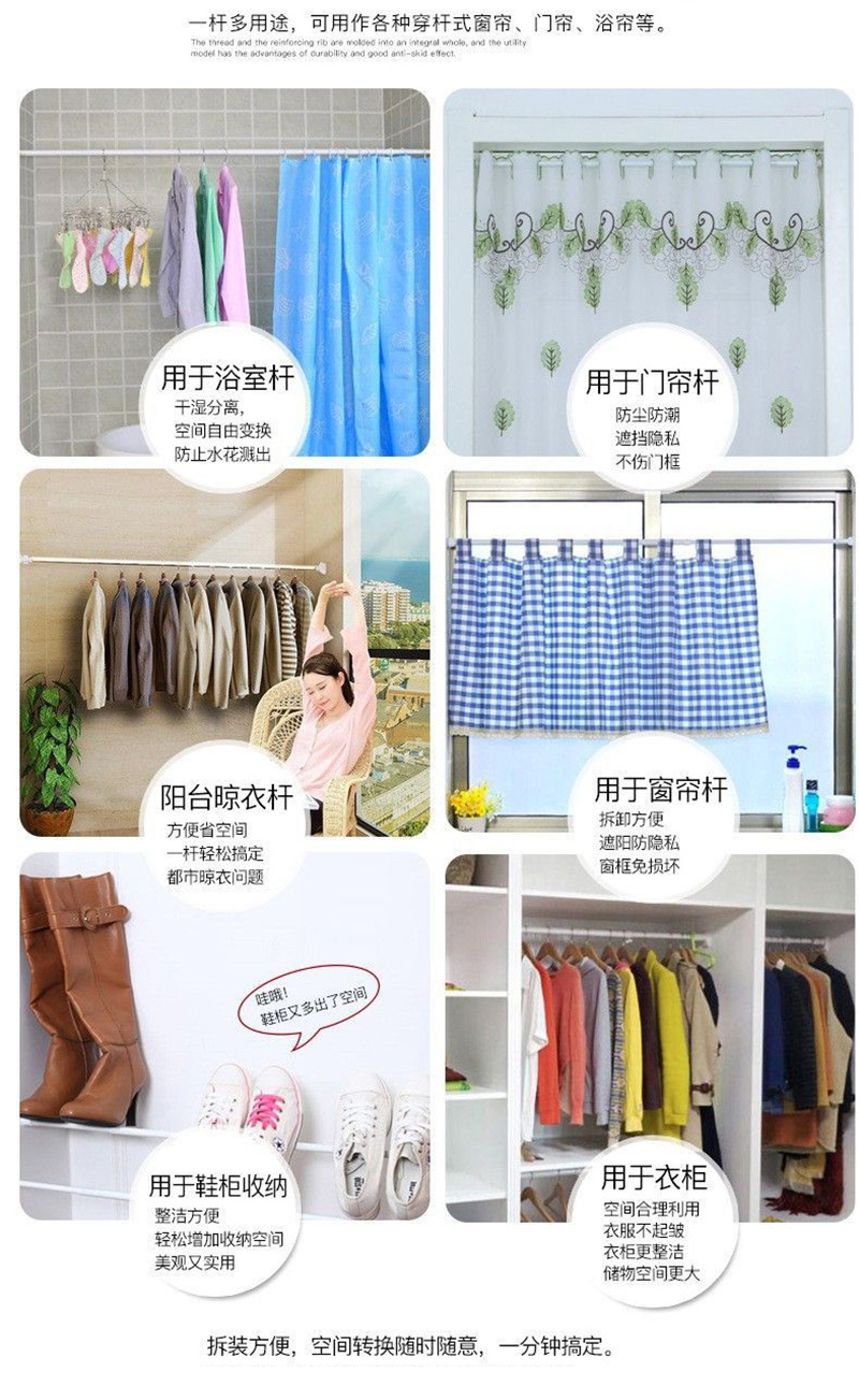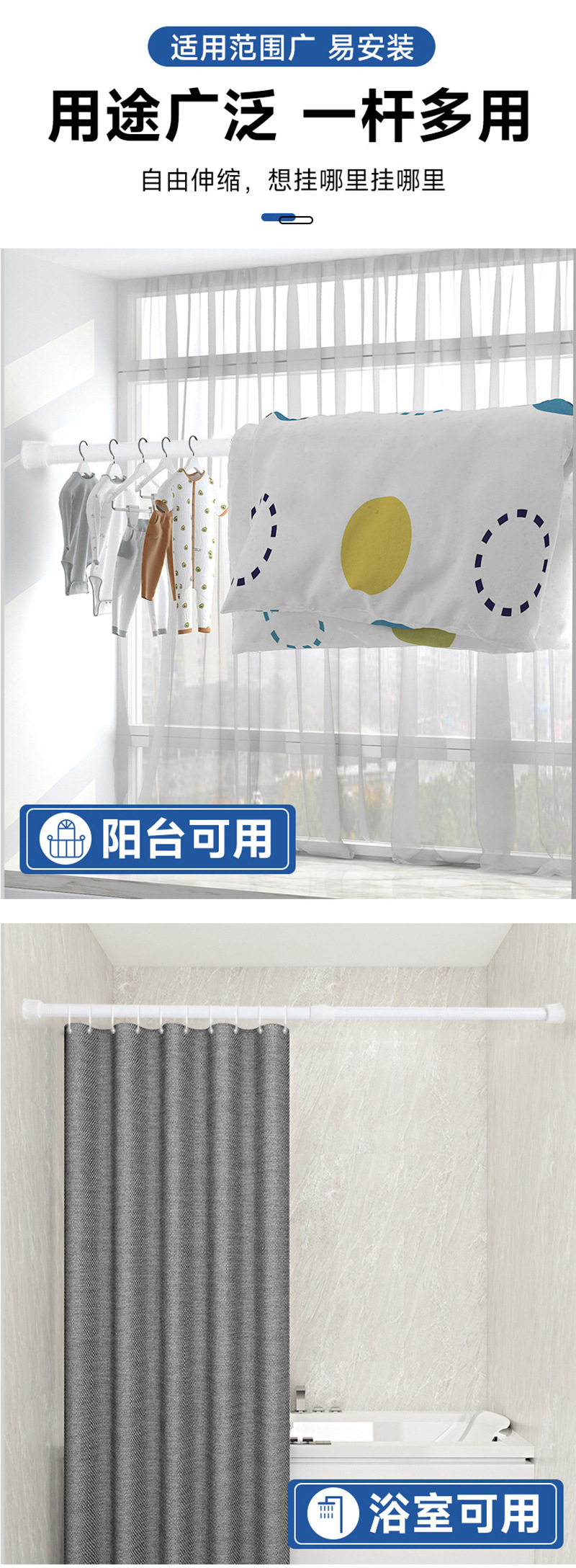 구멍이없는 설치 텔레스코픽 로드 의류 건조 막대 그늘 도어 커튼 막대 옷장 지지대 화장실 조절 수축 막대