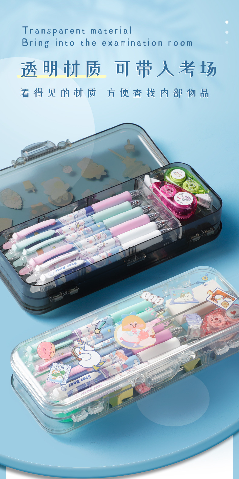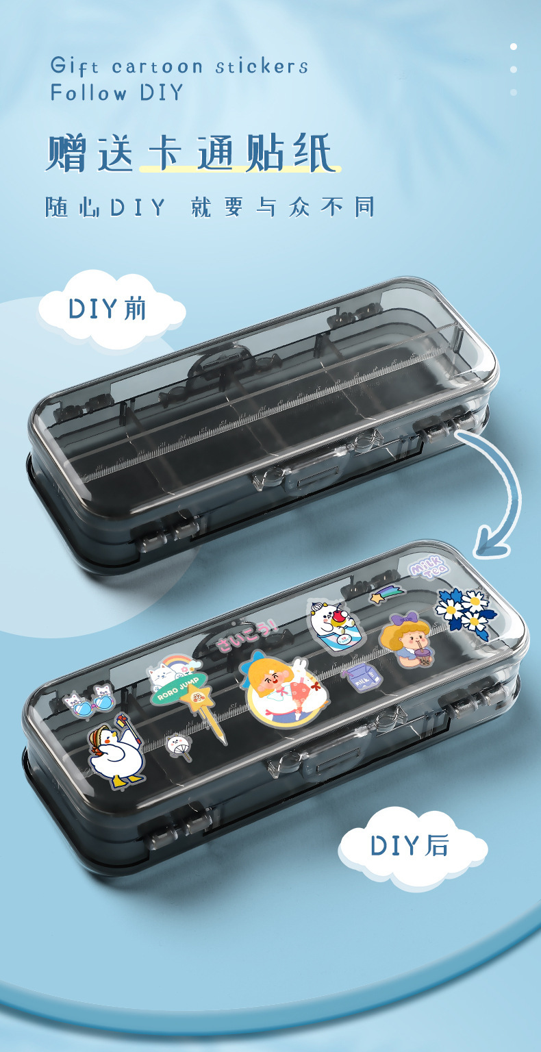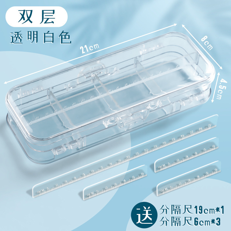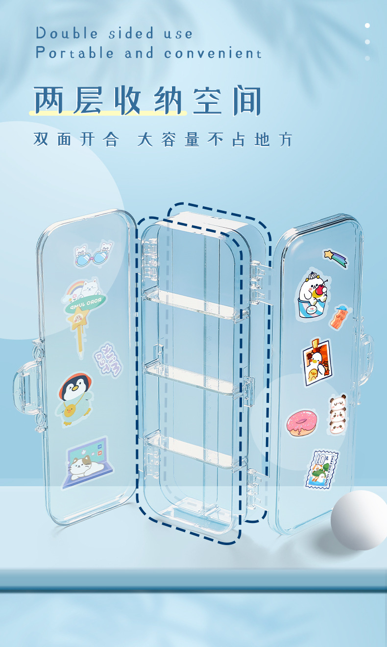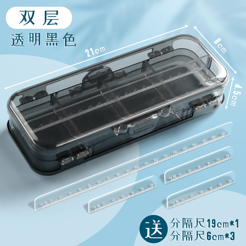 간단한 투명 하드 아크릴 펜 상자 학생 문구 상자 양면 더블 레이어 대용량 분리형 보관 상자