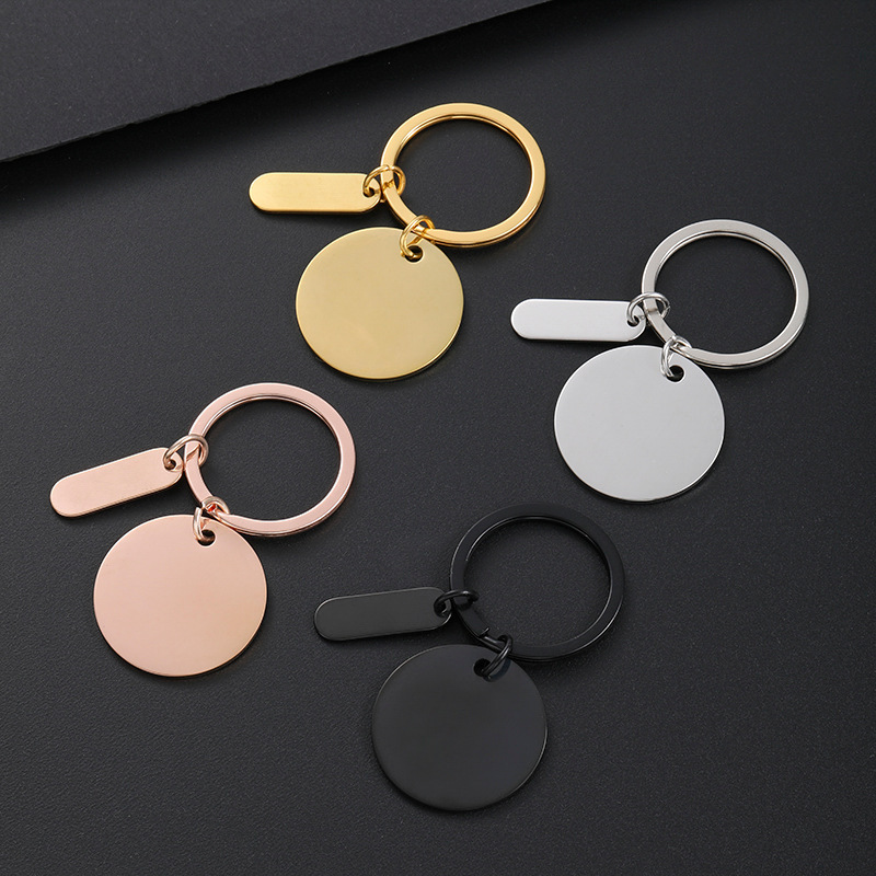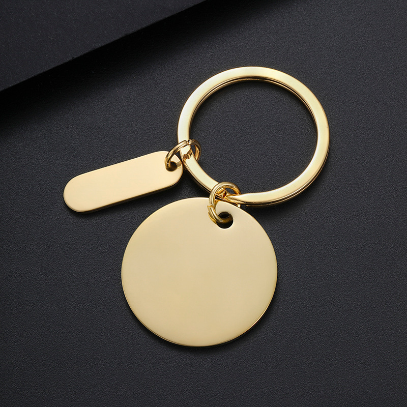 • 골드 키체인 + 동일한 색상의 스테인레스 스틸 각인 펜던트, 내용 맞춤 가능
