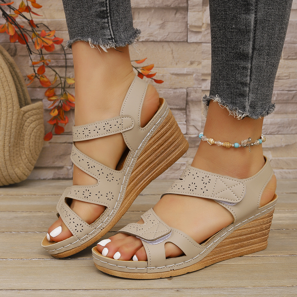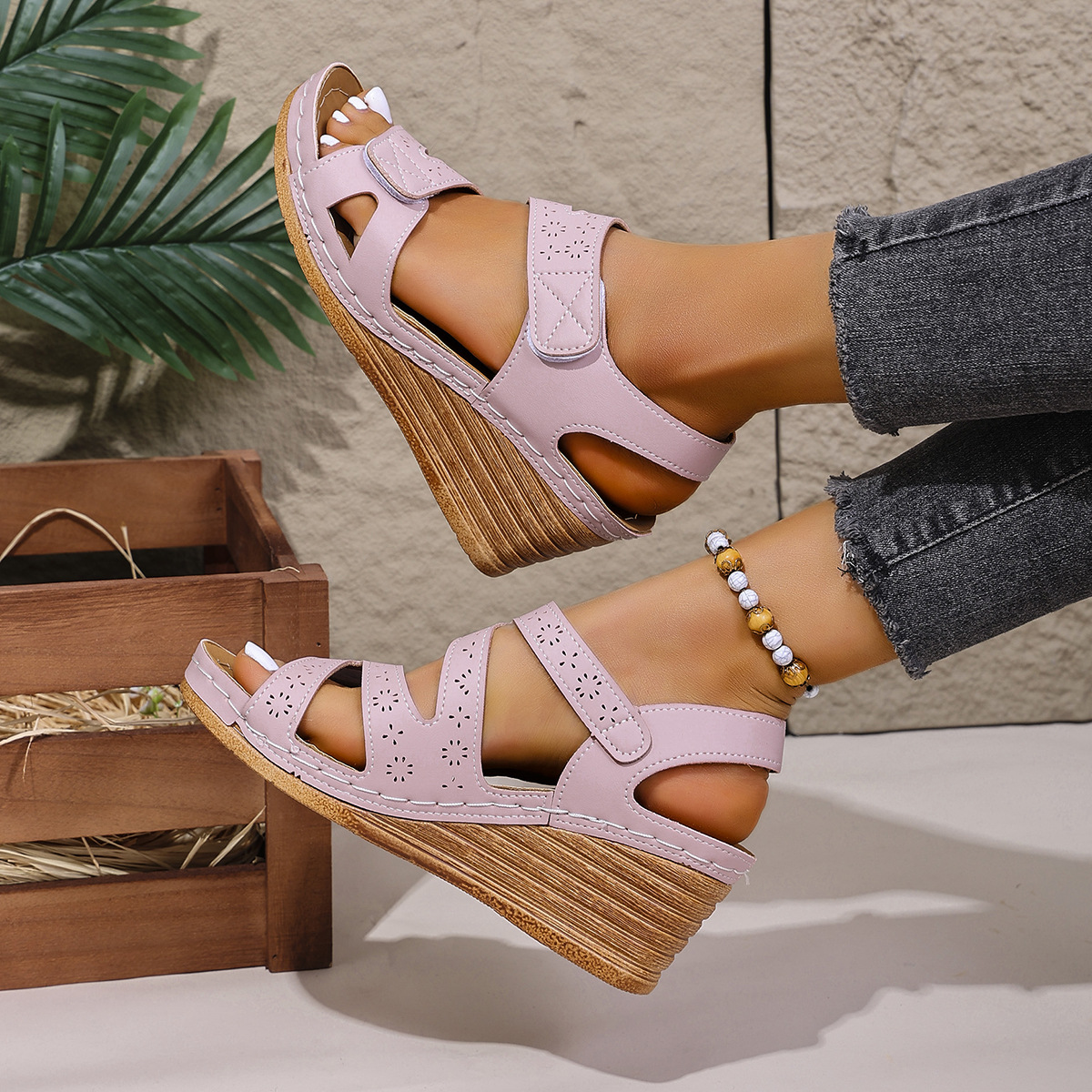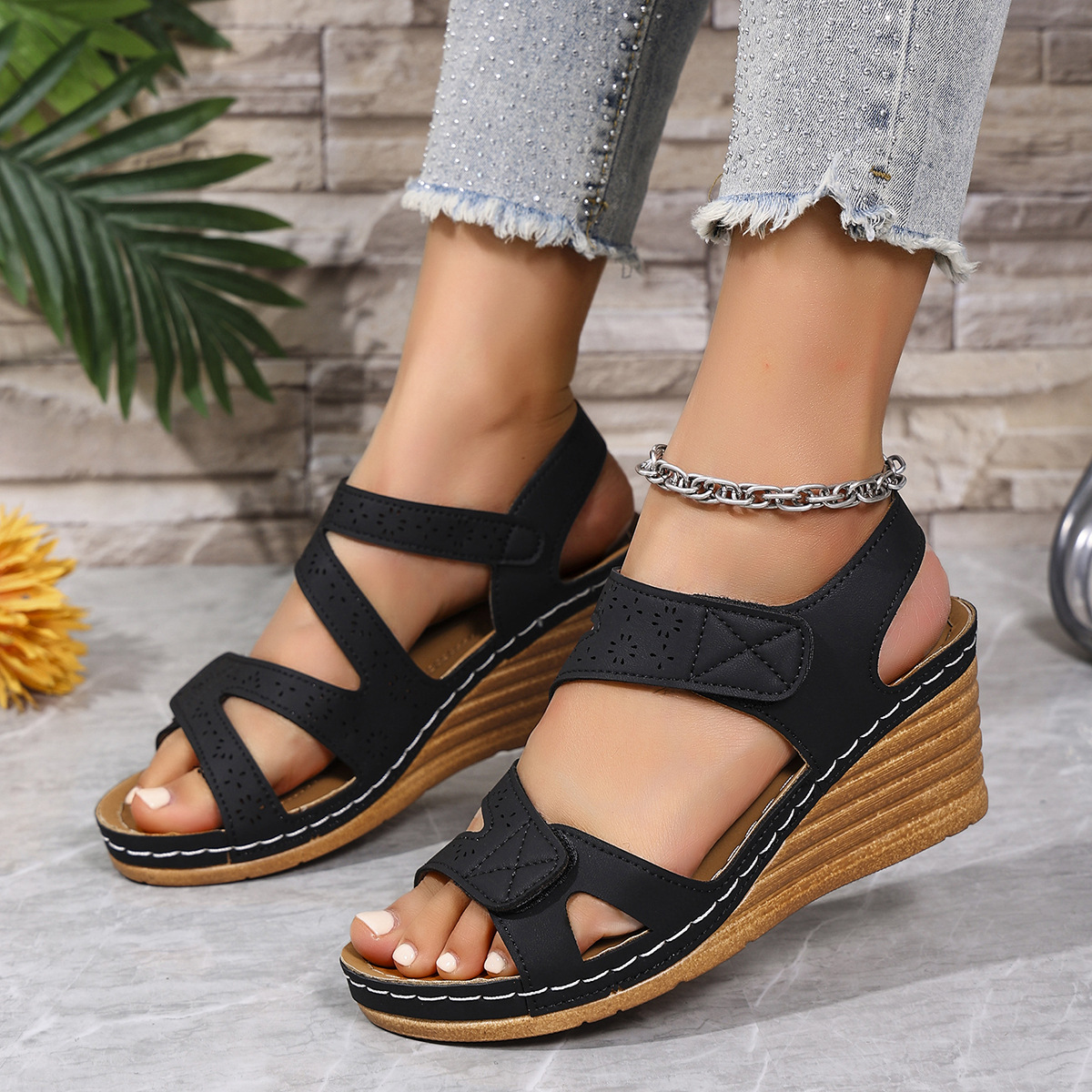 캐주얼 대외 무역 웨지 샌들 2025 여름 새로운 벨크로 패션 여성 신발 솔리드 컬러 대형 로마 샌들