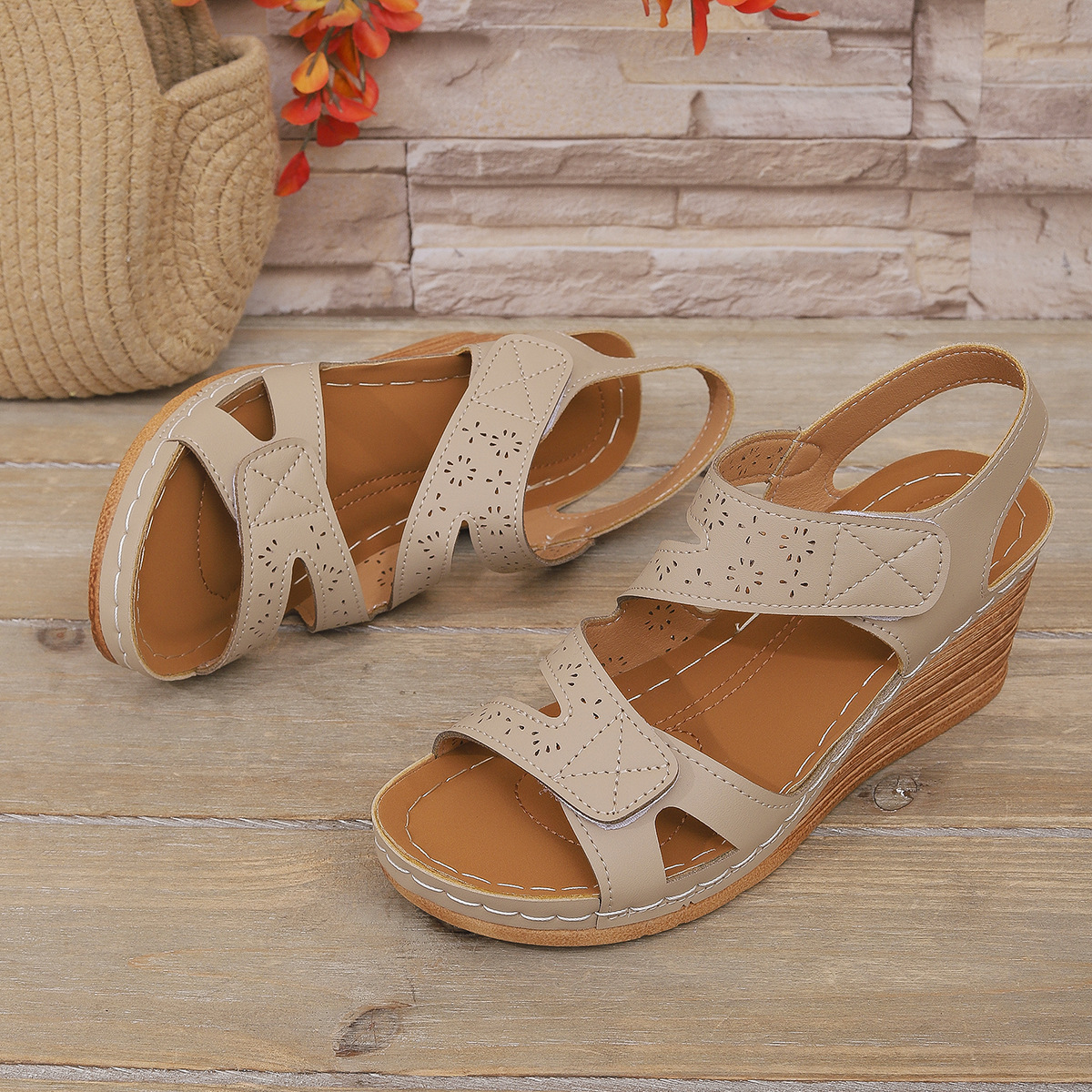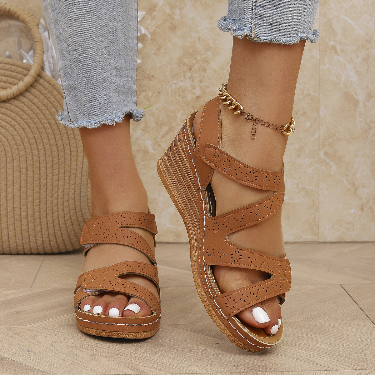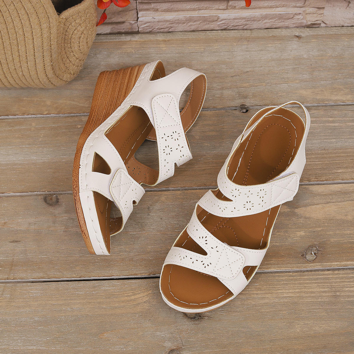 캐주얼 대외 무역 웨지 샌들 2025 여름 새로운 벨크로 패션 여성 신발 솔리드 컬러 대형 로마 샌들