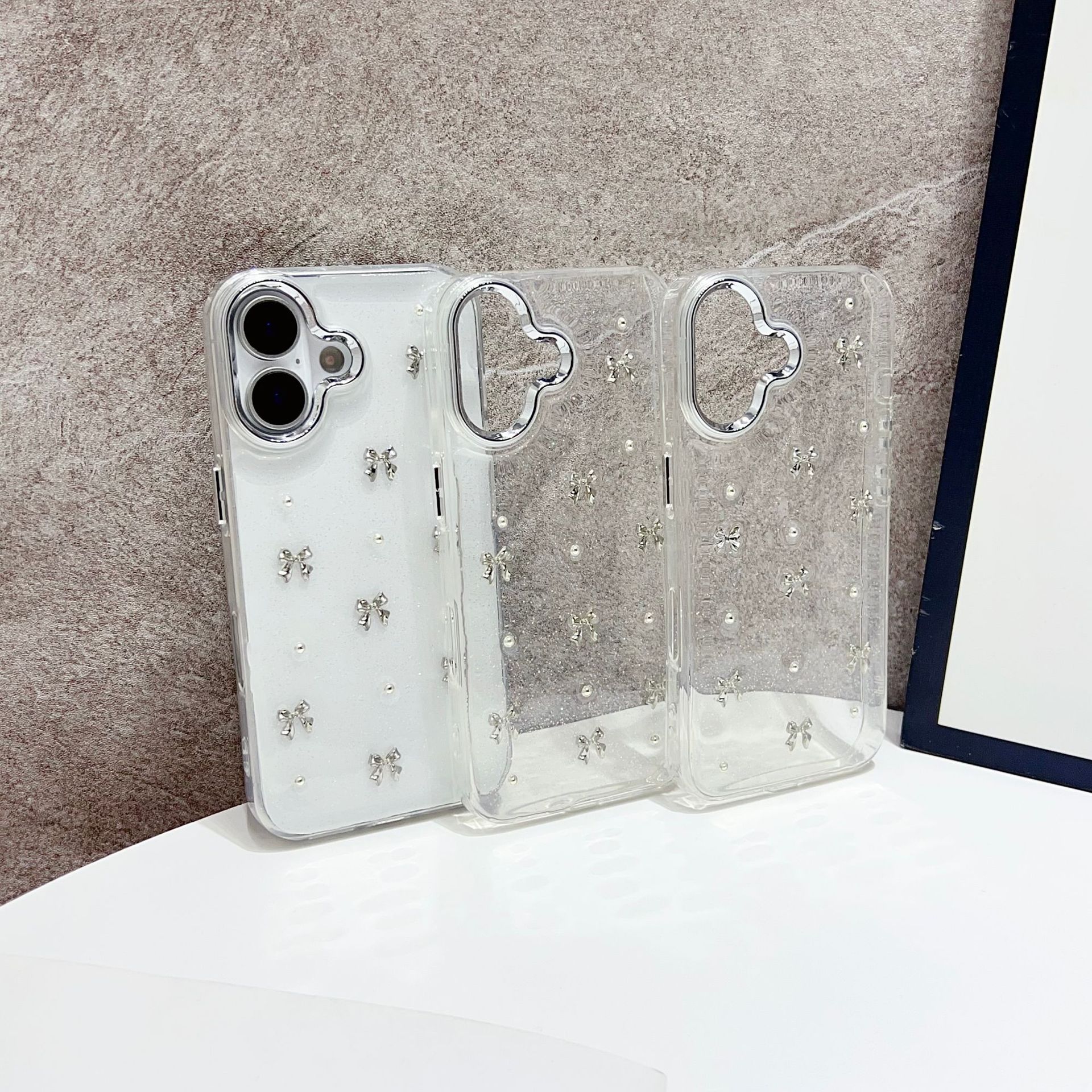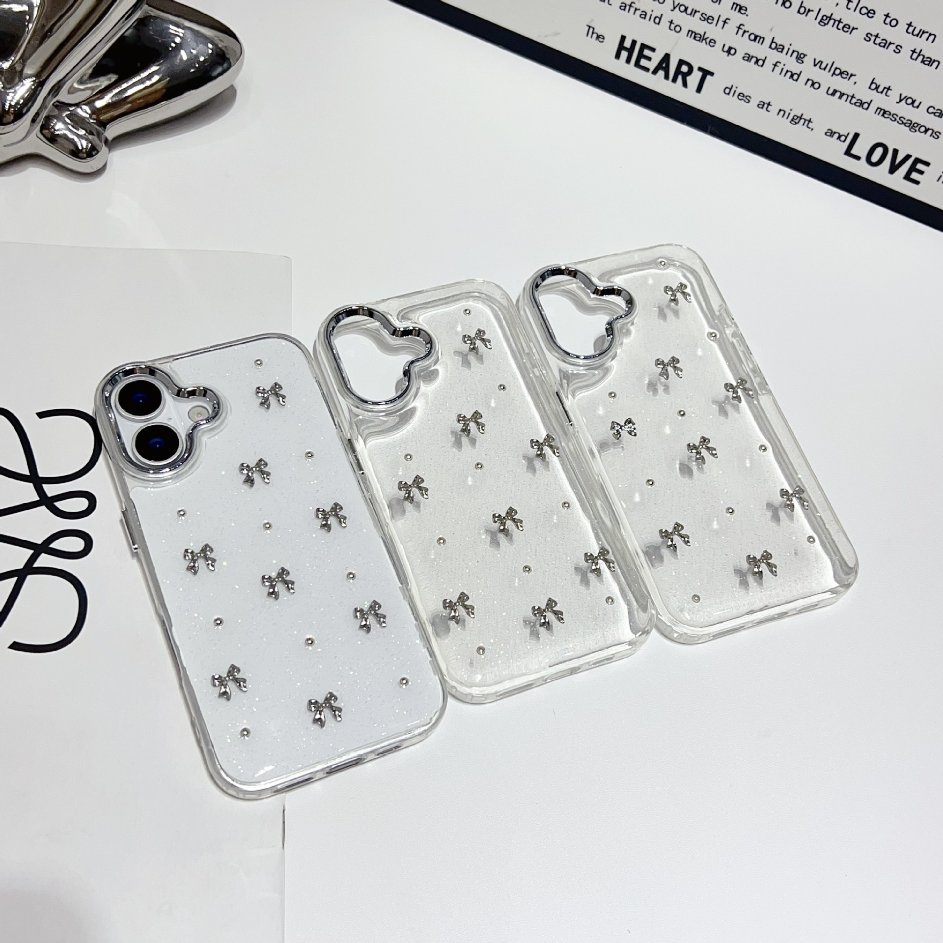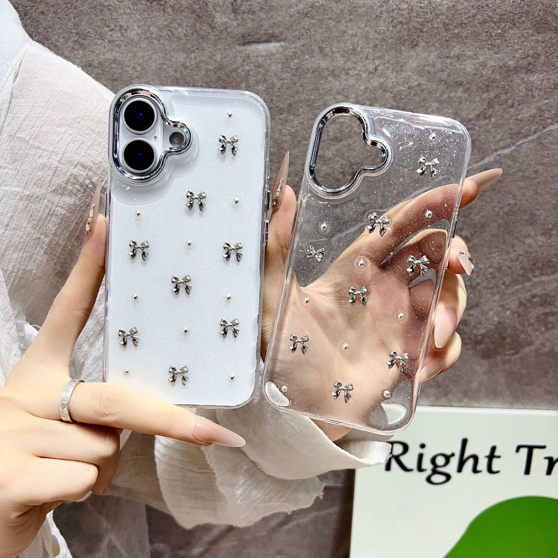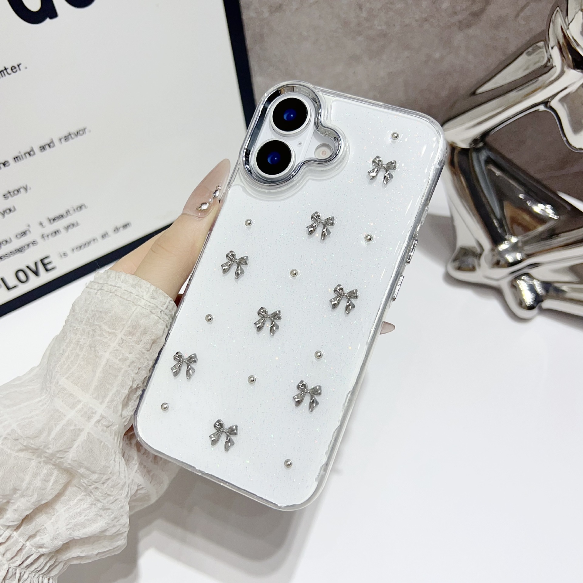 IPhone16 반짝이 전화 케이스 전기 도금 버튼 애플 11/15 보호를위한 아름다운 눈 방울 접착제 실버 활