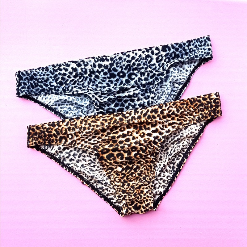 Junkuimei 대외 무역 크로스 보더 남성 속옷 원피스 섹시한 팬티 짧은 표범 인쇄 얼음 실크 속옷 dropshipping스토어 가기