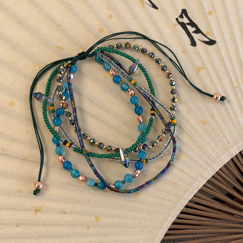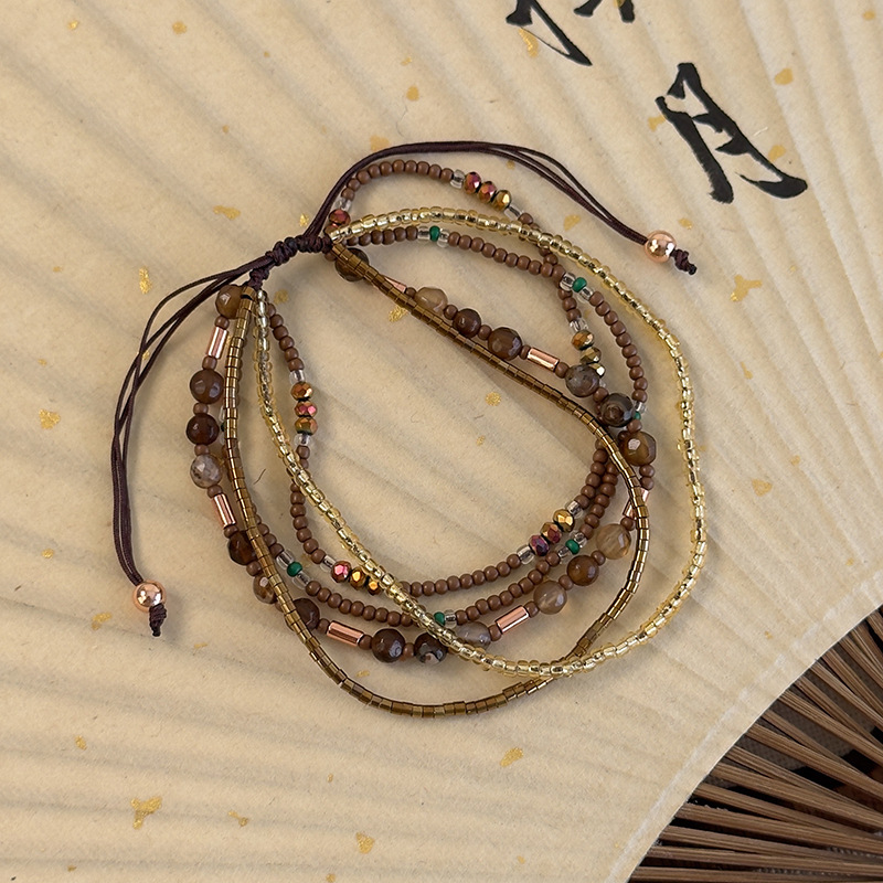 Maillard 컬러 다층 구슬 팔찌 여성용 빈티지 새로운 중국 틈새 손 보석 민족 스타일 스택 팔찌