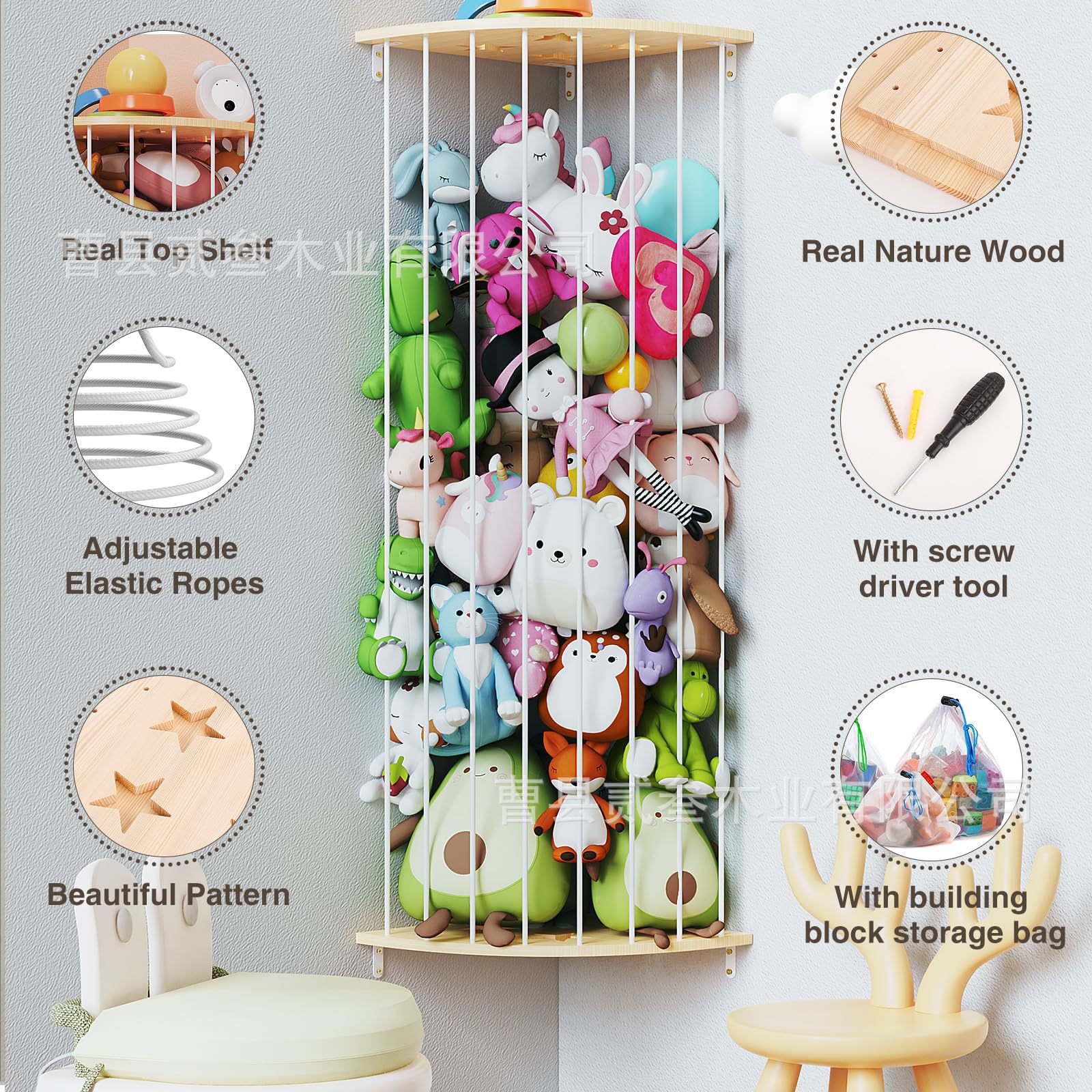 나무 인형 상자 벽걸이 형 거실 장식품 코너 동물 장난감 단단한 나무 보관함 플러시 장난감 보관 상자