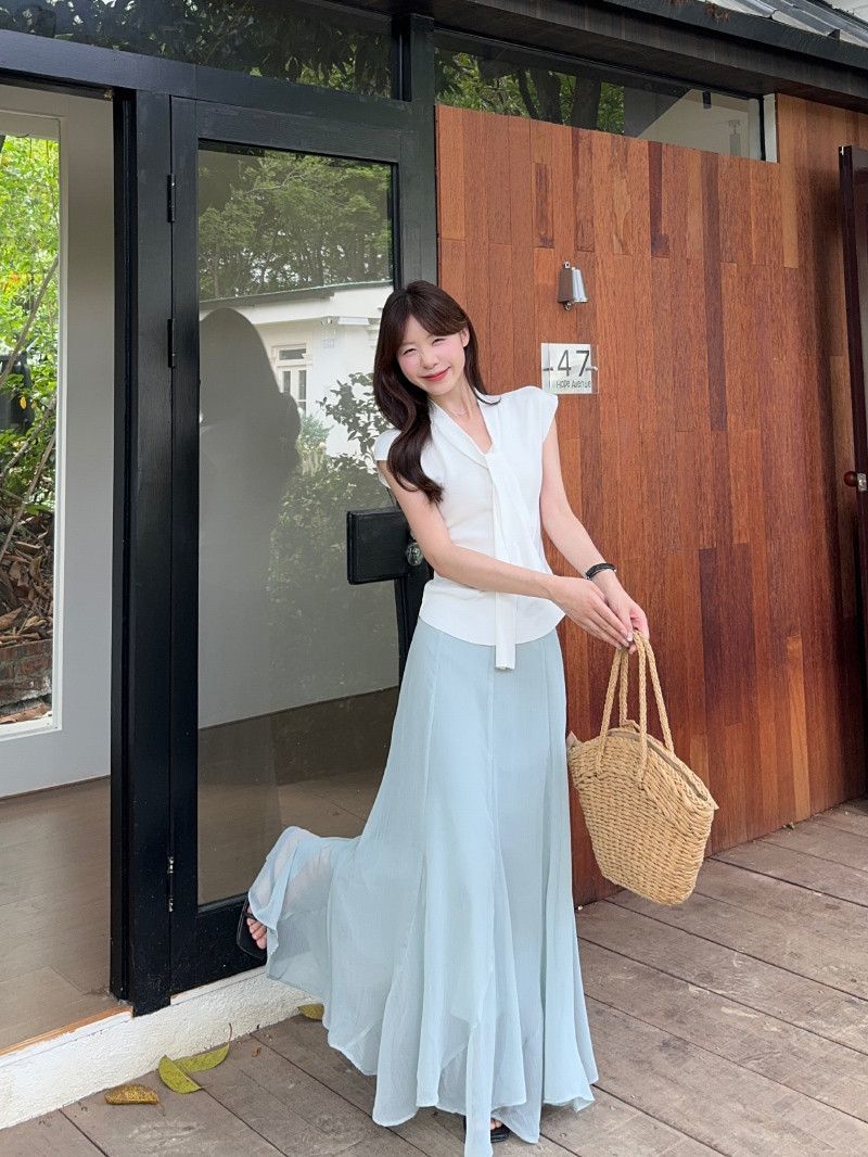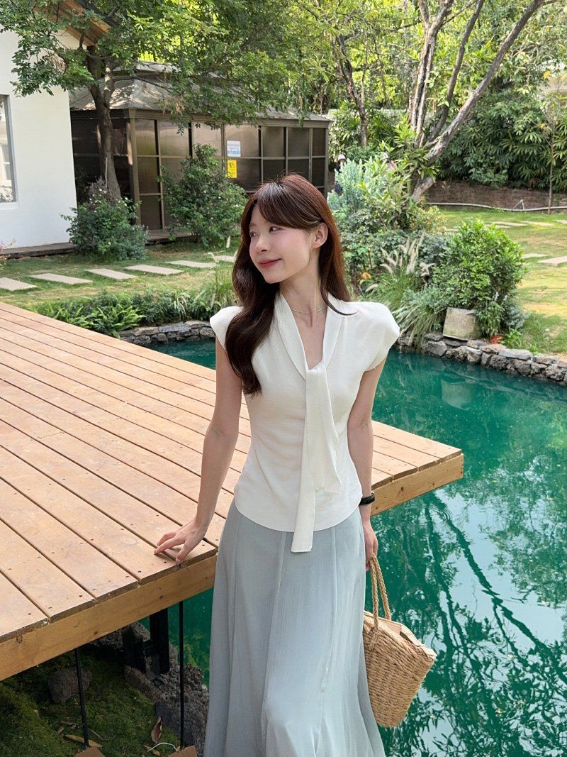 젠틀 스타일 슈트 니치 브이넥 스트랩 반팔 티셔츠 여성 여름 하이웨이스트 힙 스커트 피쉬테일 스커트 투피스 세트스토어 가기