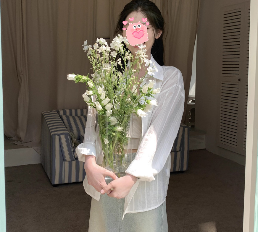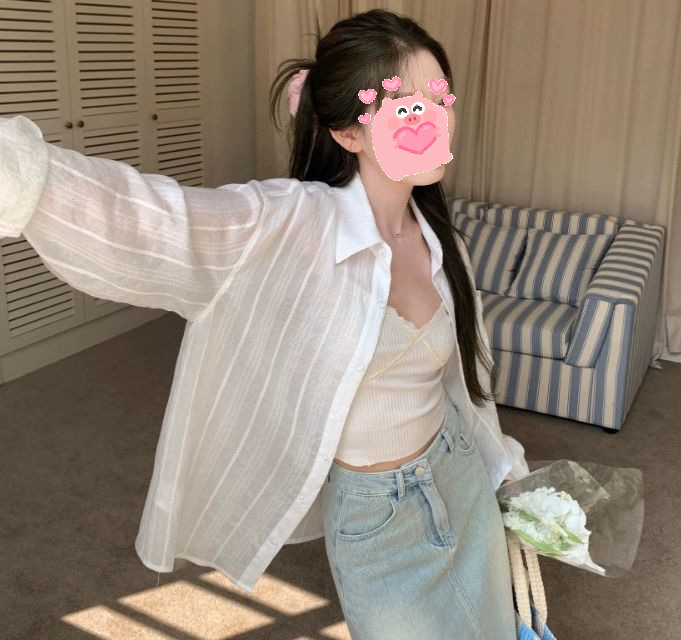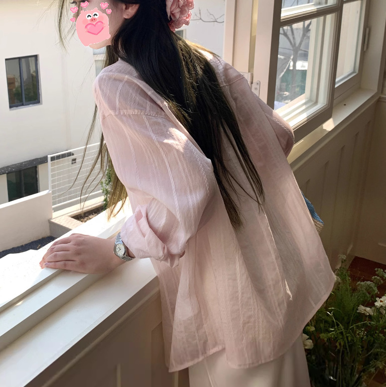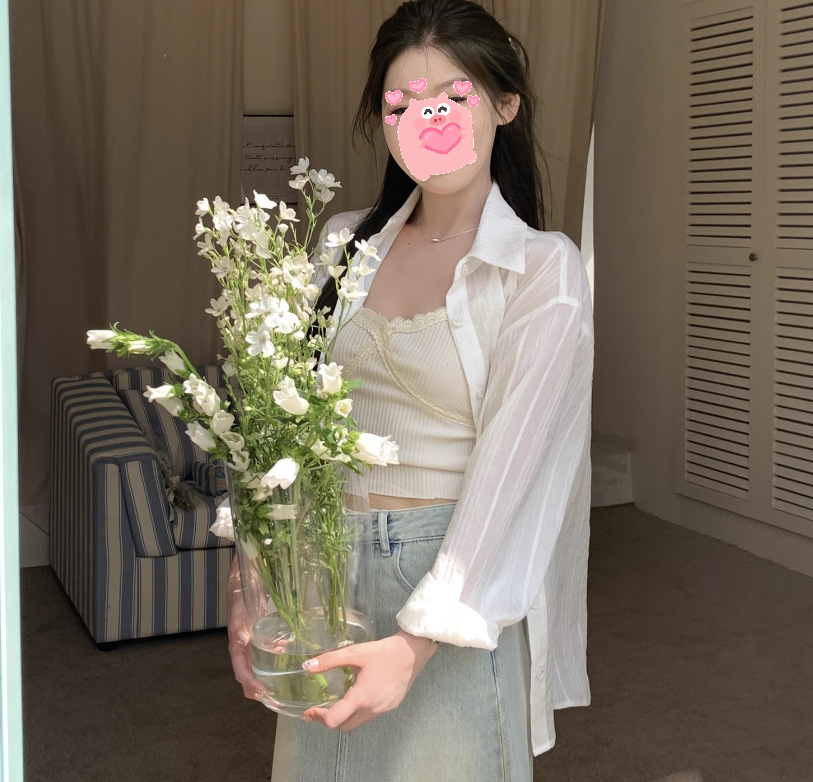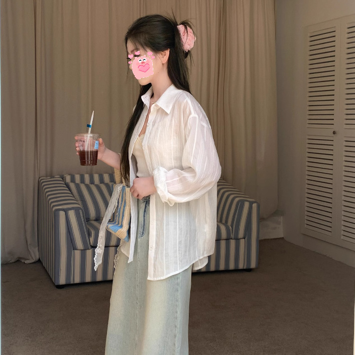 여성을위한 흰색 약간 반투명한 자외선 차단제 긴팔 셔츠 여름 2025 한국 스타일 느슨한 게으른 스타일 캐주얼 카디건 탑 재킷