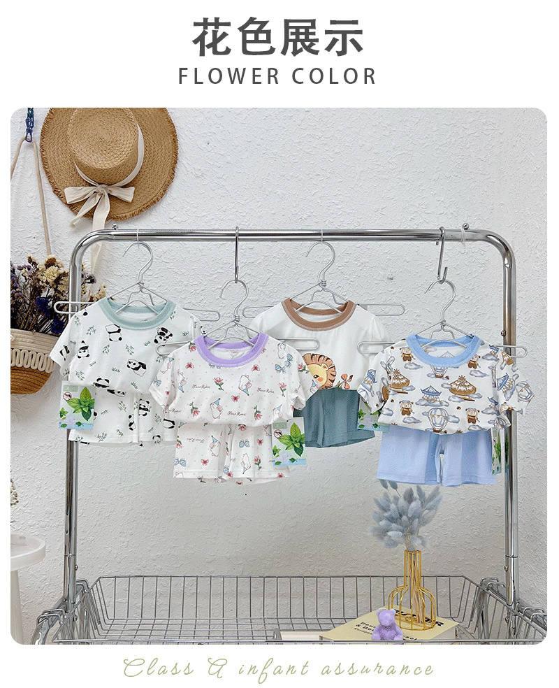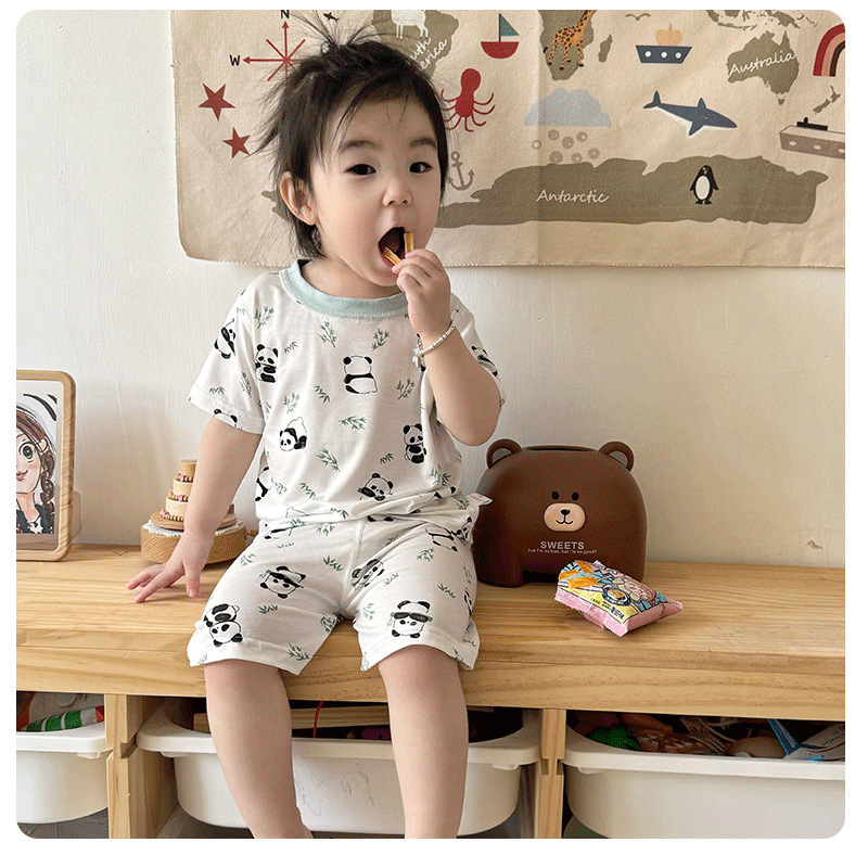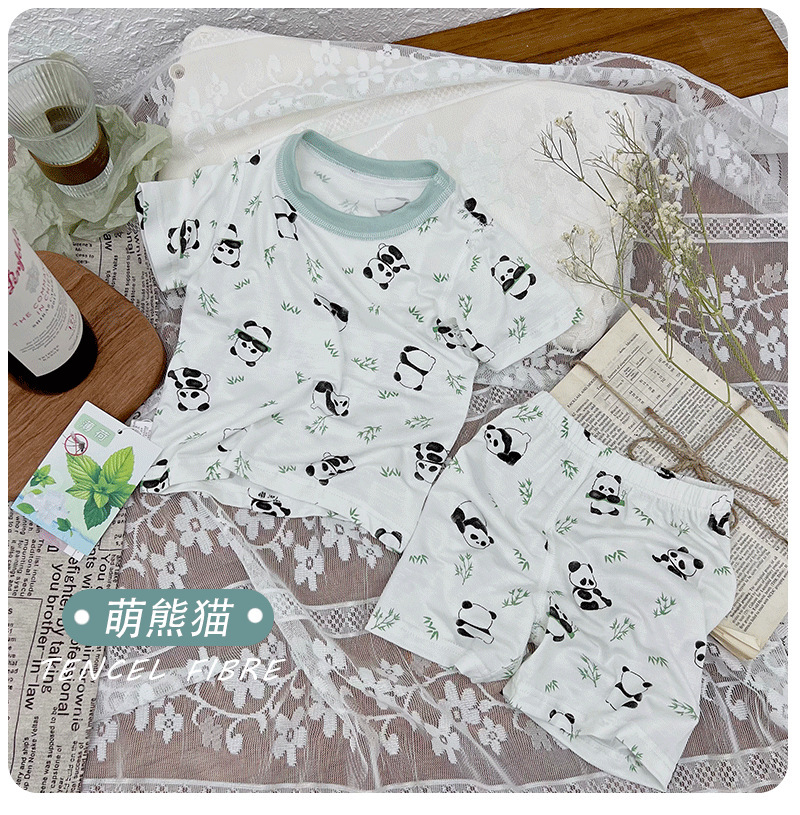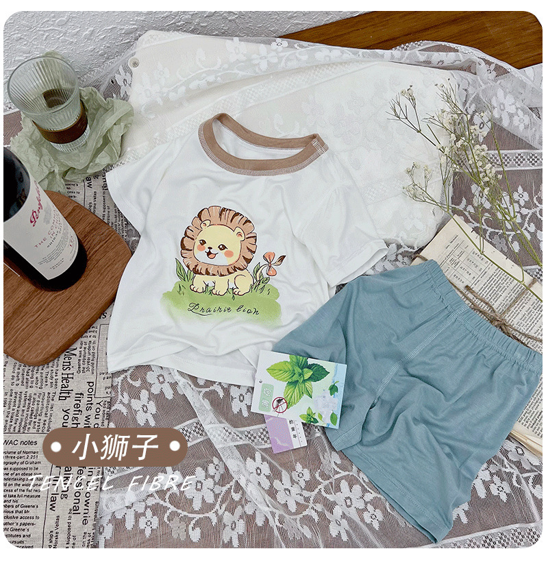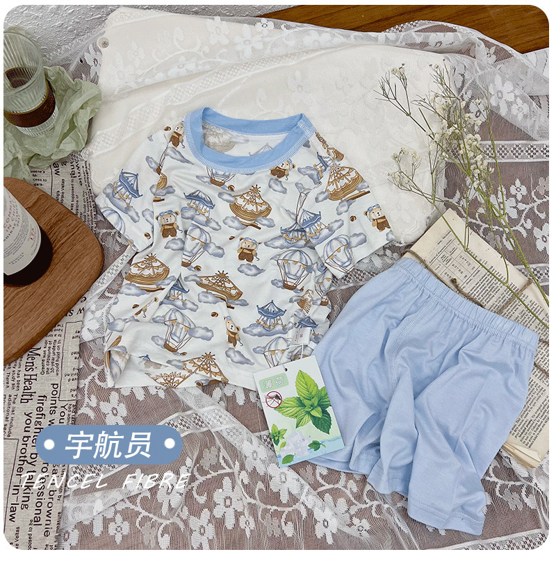 여름 뼈없는 얇은 어린이 텐셀 리오셀 아기 에어컨 옷 소년과 소녀 가정 의류 반팔 반바지 정장스토어 가기