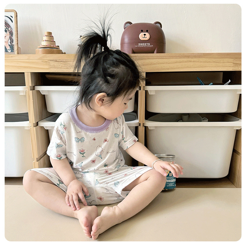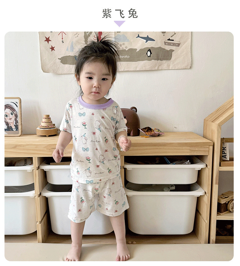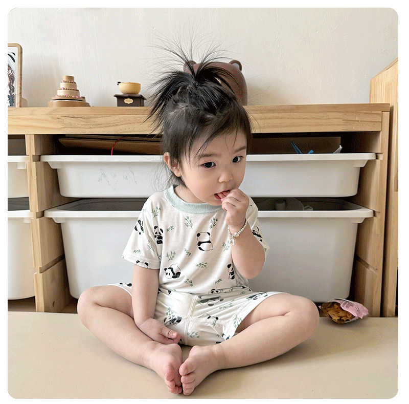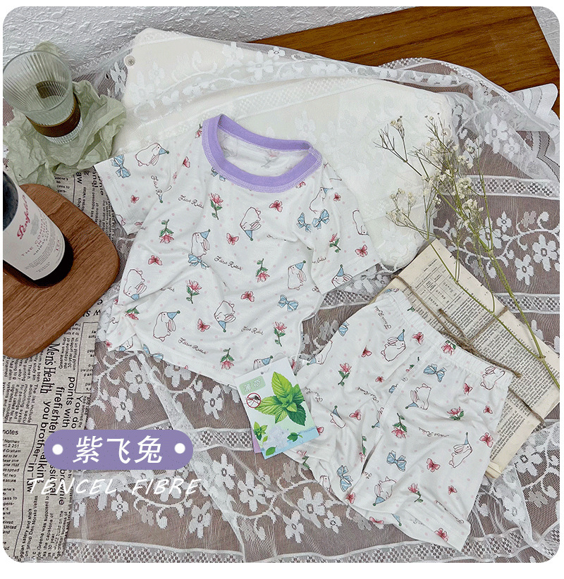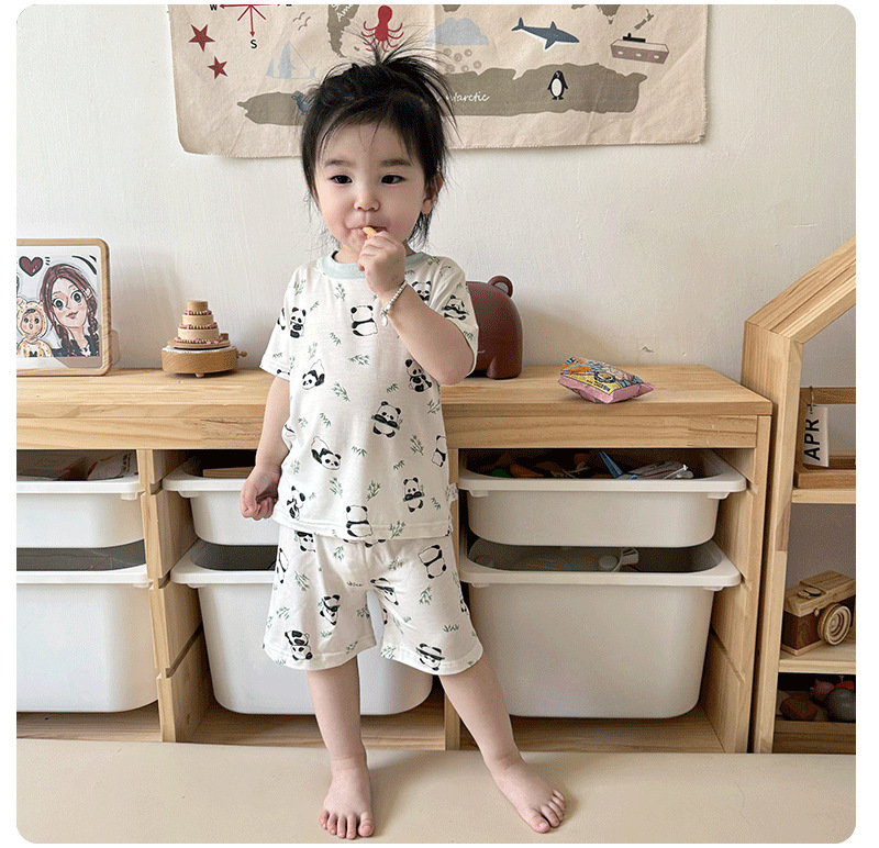 여름 뼈없는 얇은 어린이 텐셀 리오셀 아기 에어컨 옷 소년과 소녀 가정 의류 반팔 반바지 정장스토어 가기
