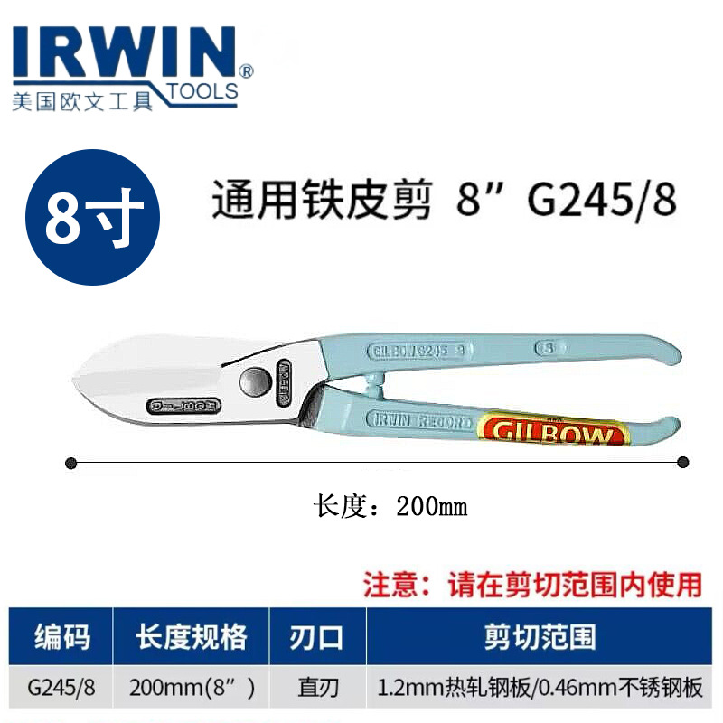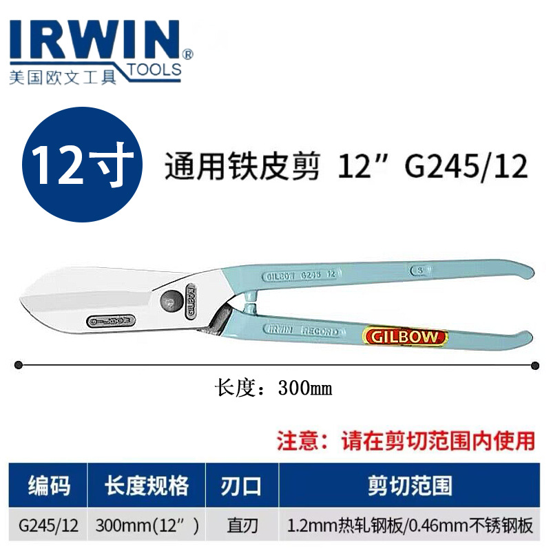 미국 수입 IRWIN 오웬스 스테인레스 강철 가위 GILBOW 브랜드 얇은 강판 가위 백색 철 가위 G245