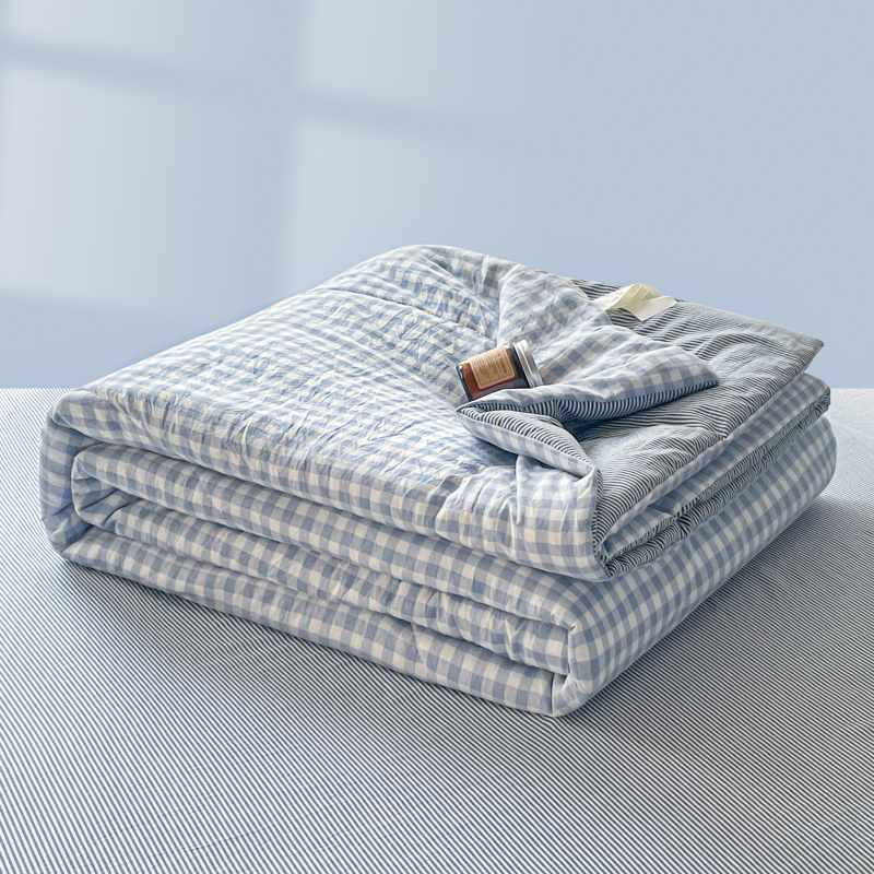2025 신장면 이불 여름 시원한 이불 여름 에어컨 이불 워시 코튼 싱글 얇은 여름 이불 격자 무늬 여름 A 클래스스토어 가기
