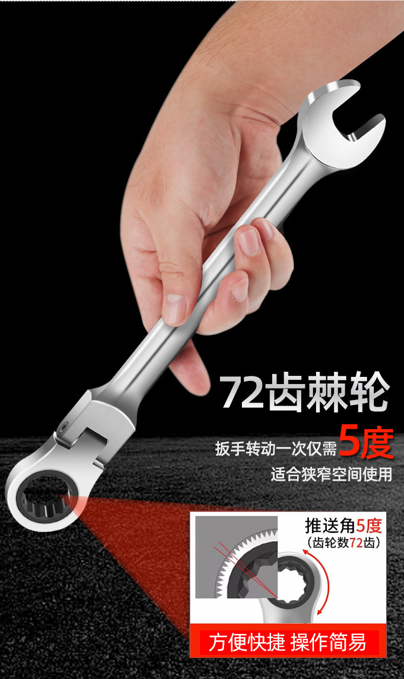 산업용 이중 목적 매화 오픈 빠른 래칫 렌치 부드러운 핸들 72 치아 높은 경도 거울 광택 자동차 수리 도구스토어 가기