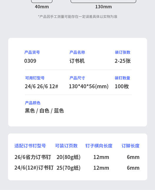 델리 문구류 0309 스테이플러 학생 사무실 스테이플러 12호 제본기는 표준 경제형 20페이지를 스테이플 수 있습니다.