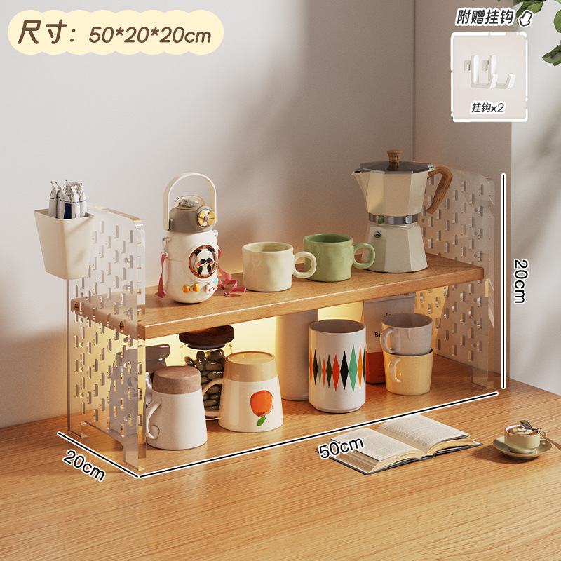 • [2겹] 통나무색상 + 아크릴 홀보드 50*20*36 (후크 + 수납박스 포함)