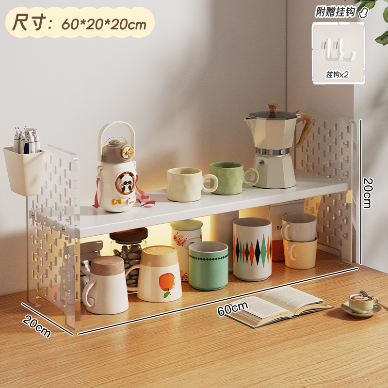 • [2겹] 웜화이트 + 아크릴 홀보드 60*20*36 (후크 + 수납박스 포함)