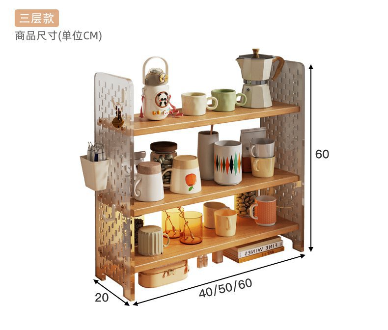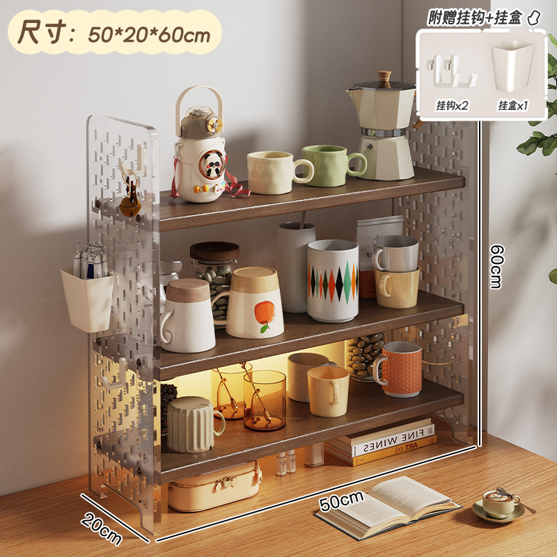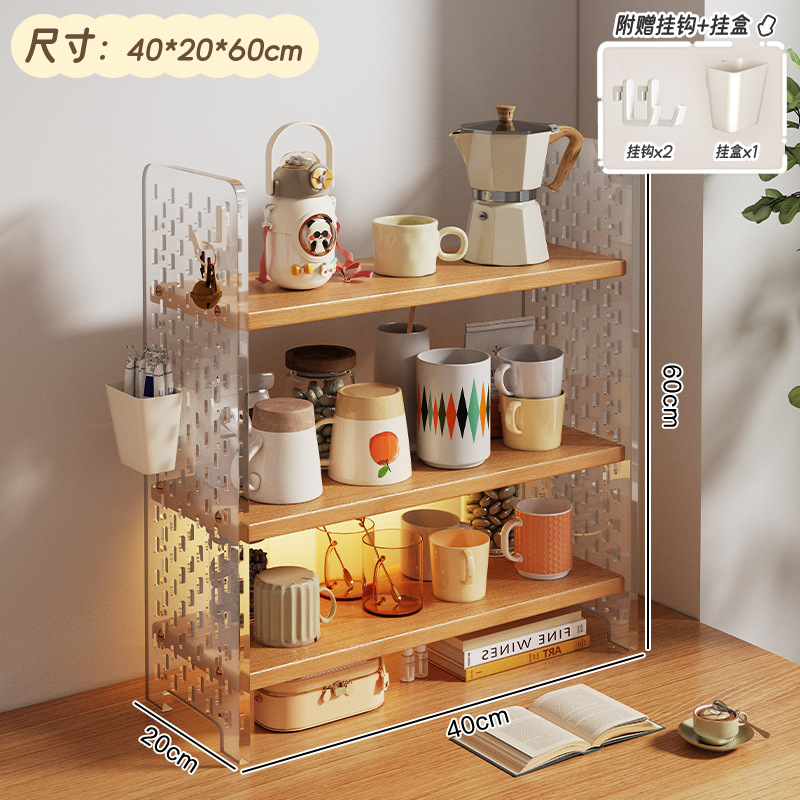 • [3겹] 통나무색상 + 아크릴 홀보드 60*20*60 (후크 + 수납박스 포함)