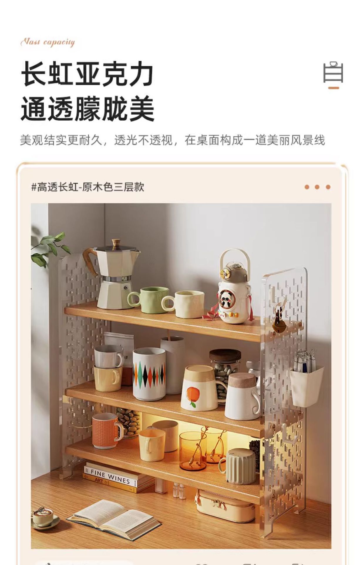 • [2겹] 통나무색상 + 아크릴 홀보드 40*20*36 (후크 + 수납박스 포함)