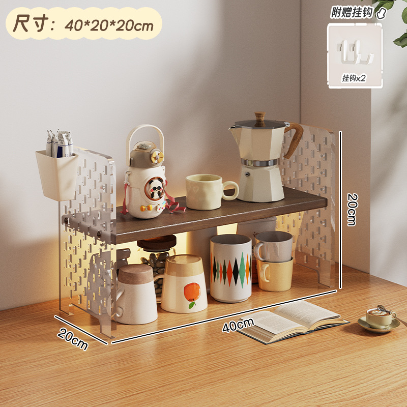 • [2겹] 월넛색상 + 아크릴 홀보드 40*20*36 (후크 + 수납박스 포함)