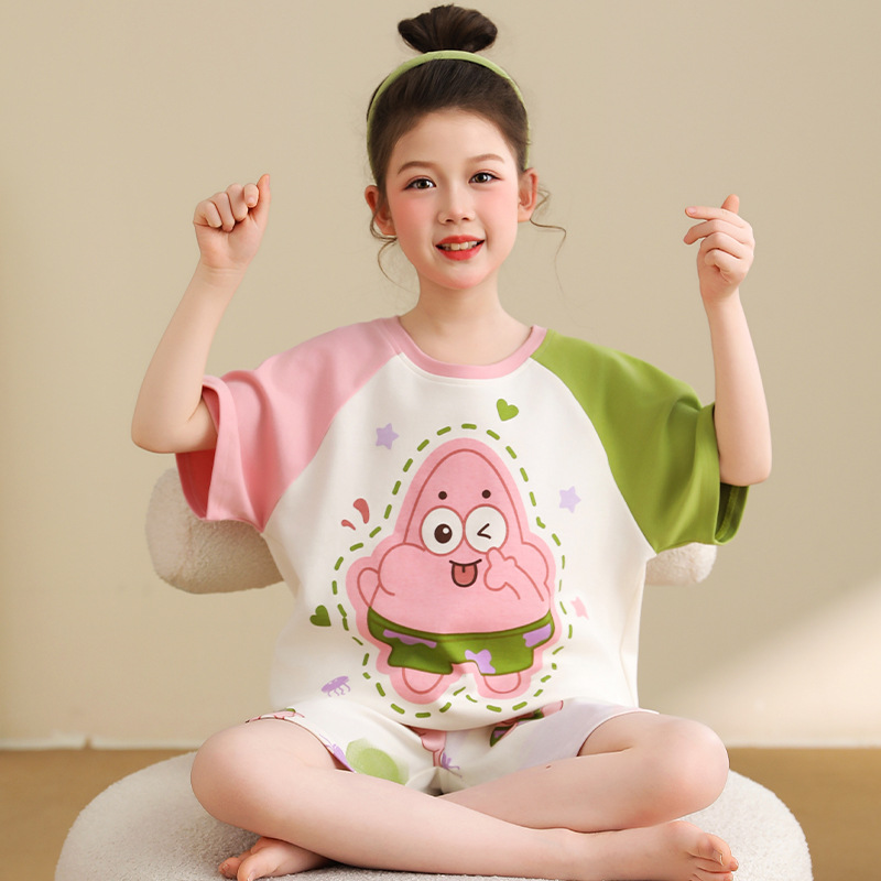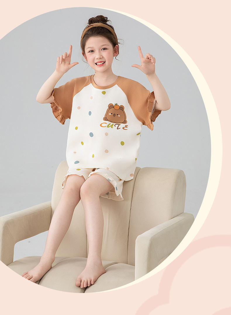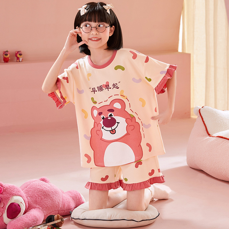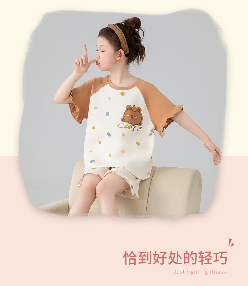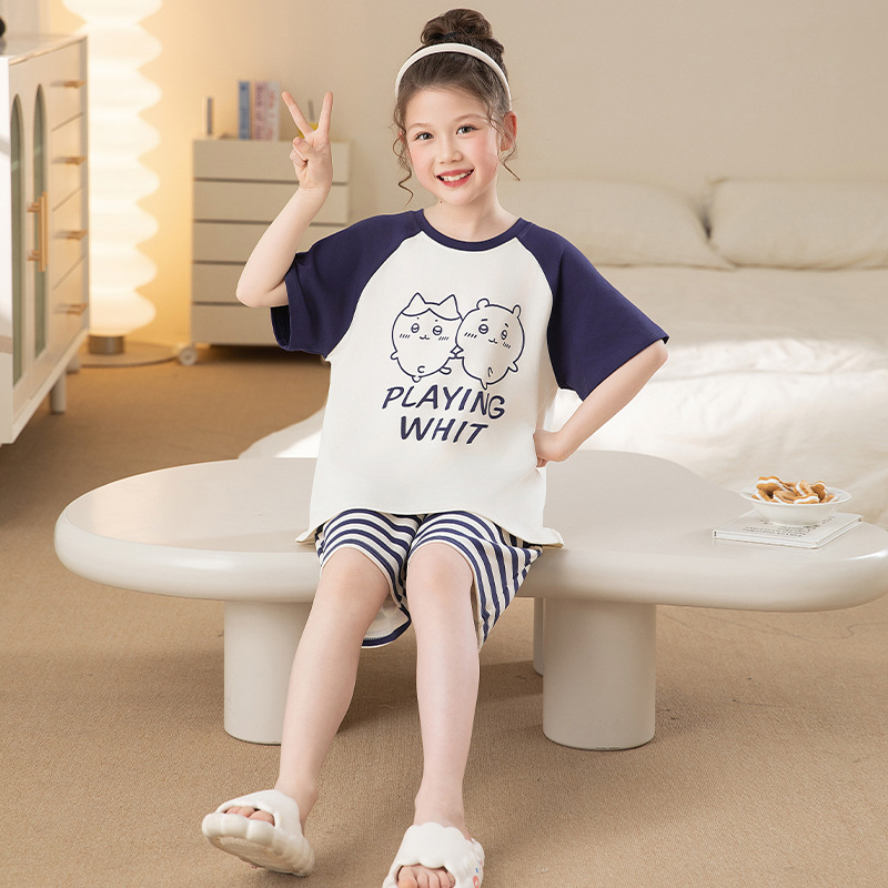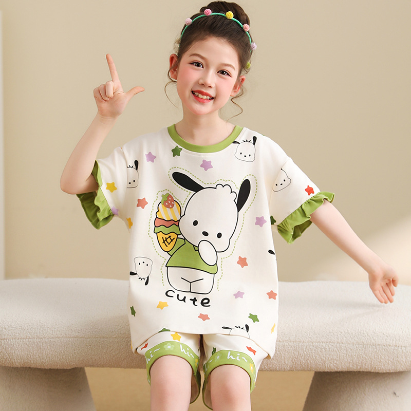 귀여운 Kapibara 순수 코튼 소녀 잠옷 여성 여름 풀오버 반팔 반바지 만화 중형 및 대형 아동복 세트
