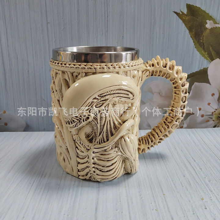 국경을 넘는 신제품 Xenomorph 머그컵 특별한 모양의 머그컵 입체 양각 커피 컵 스테인레스 스틸 수지 장식품스토어 가기