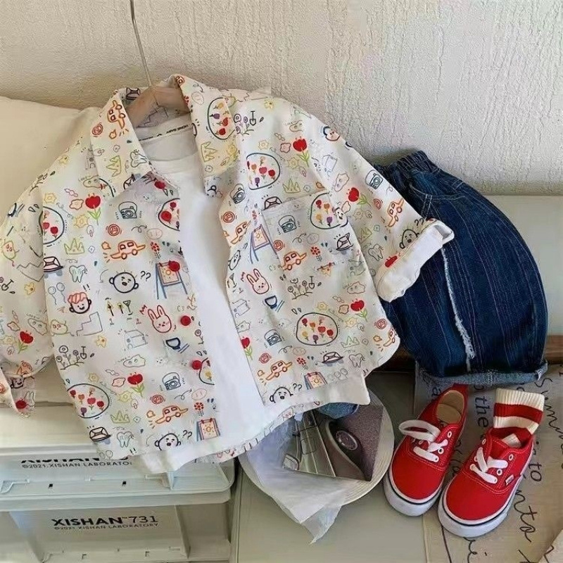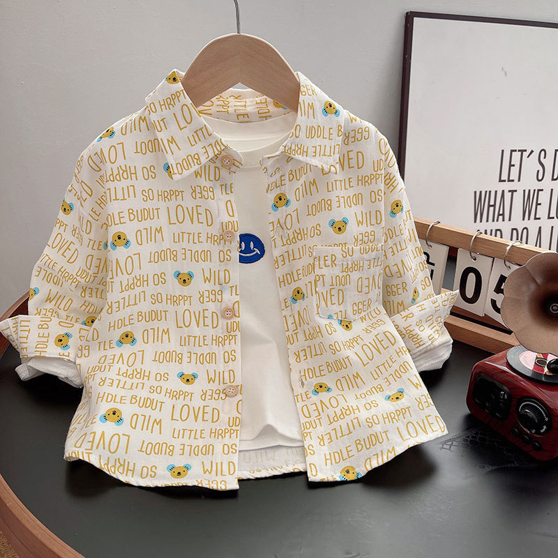 아기 봄 옷 순수 코튼 옷깃 만화 셔츠 긴팔 셔츠 2025 새로운 소년 셔츠 여름 겉옷스토어 가기